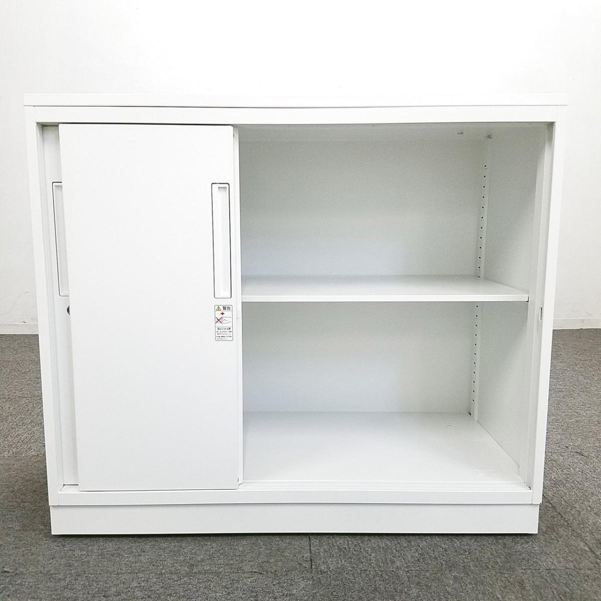 ★【T3】【T12】【商品入替のため、残り1台限り】コクヨ製 エディア ホワイト 2枚タイプ W900xD450xH1130サイズ ホワイト天板付 シリンダー 導線を確保できる引き違い戸のキャビネット! ローキャビネット 引き違い書庫!!【管理番号:A01036262】