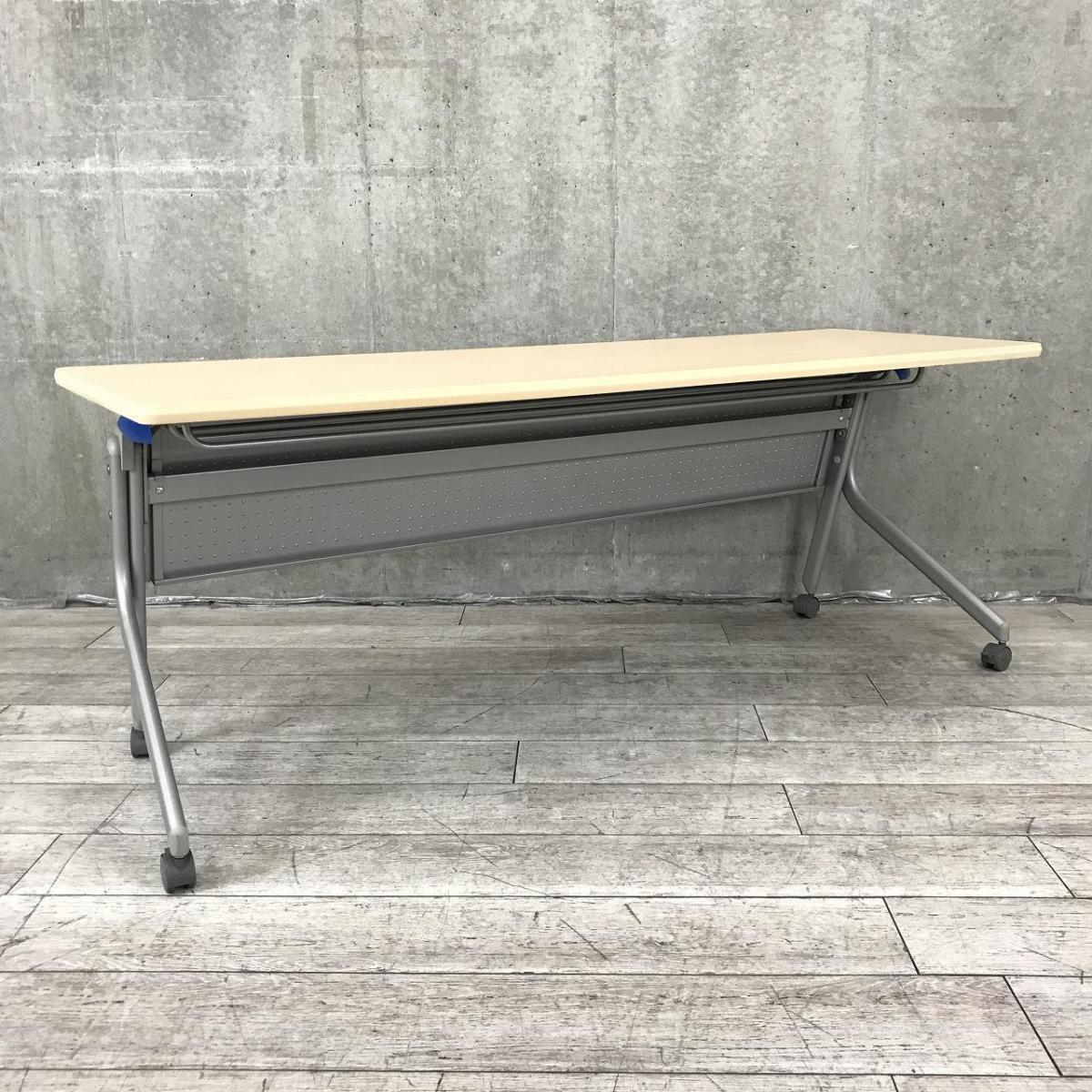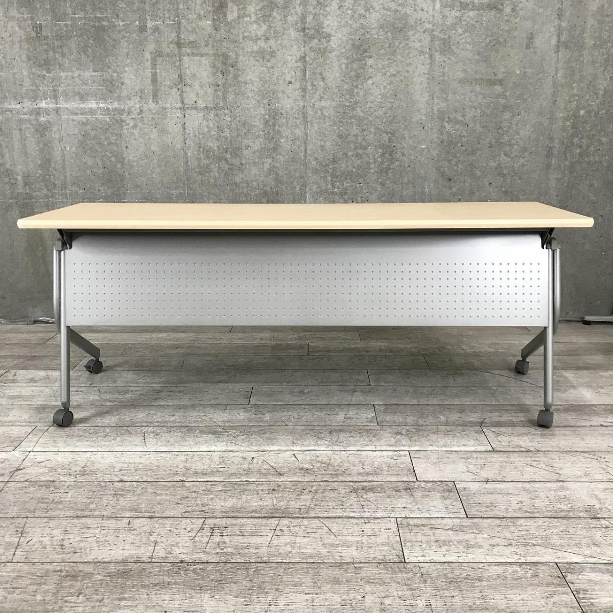 【天板跳ね上げ式でコンパクトに収納!キャスター付きで移動も楽々!】■ウチダ(UCHIDA)製 SP型シリーズ サイドスタックテーブル W1800×D450㎜ ■キャスター付 ■幕板付 ■木目ナチュラル オフィスバスターズ 水戸サテライト 日立市、常陸太田市、高萩市、北茨城市、常陸大宮市、大子町 ひたちなか市在庫がある店舗一覧