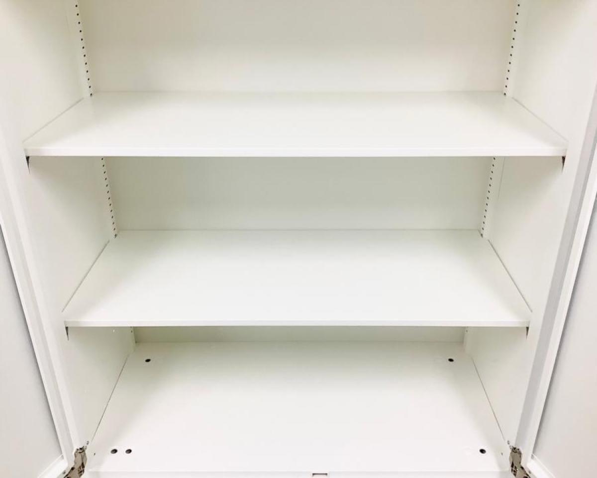 【奥行400mmの上下書庫セット!仕様が異なる2台で書類等をスッキリ整理!】オカムラ製 レクトライン 両開き+3段ラテラル 書庫セット 奥行:400㎜ ホワイト 中古家具 九州最大級《オフィスバスターズ福岡博多店は、福岡を拠点として、日本全国へ中古オフィス用品・オフィス家具を提供しております》