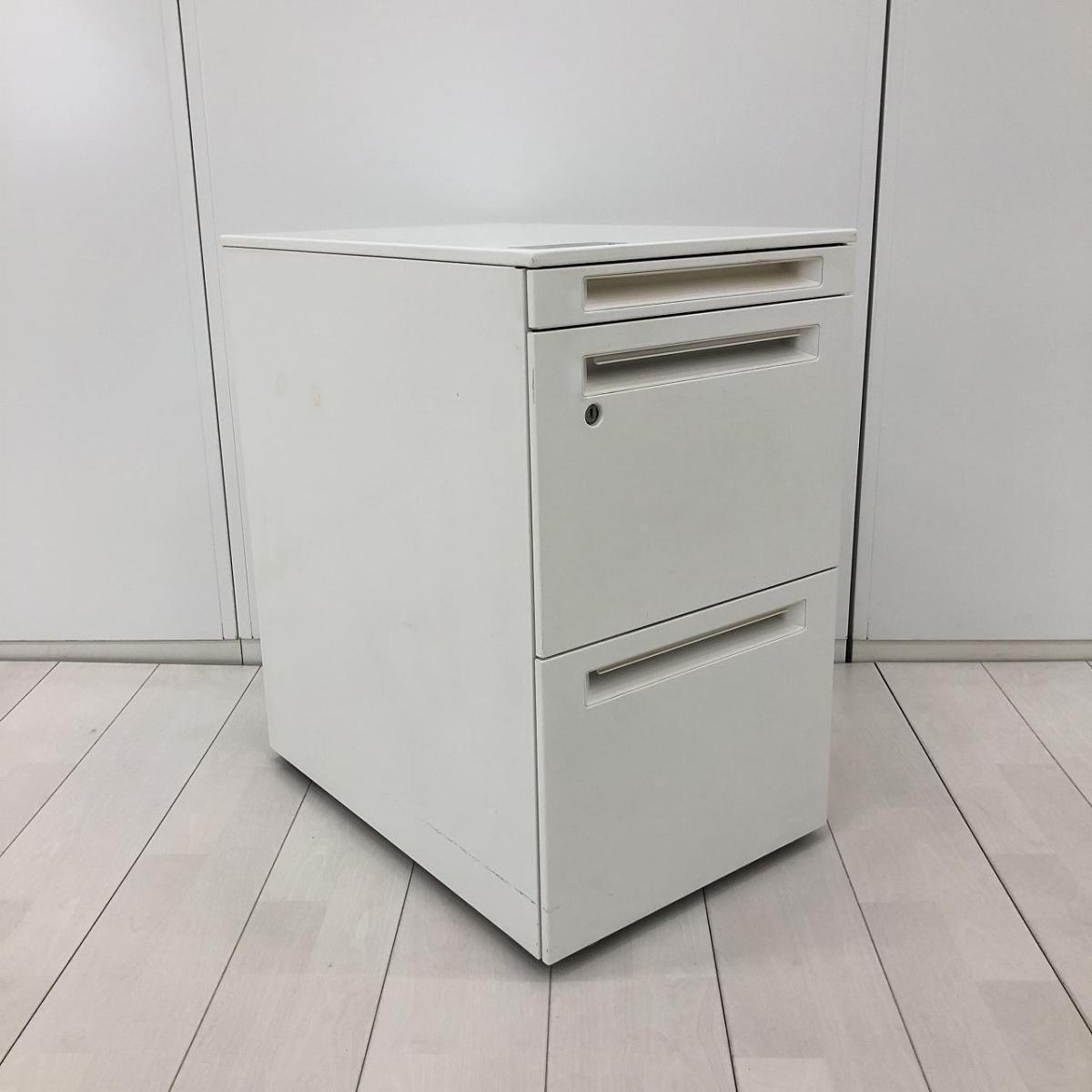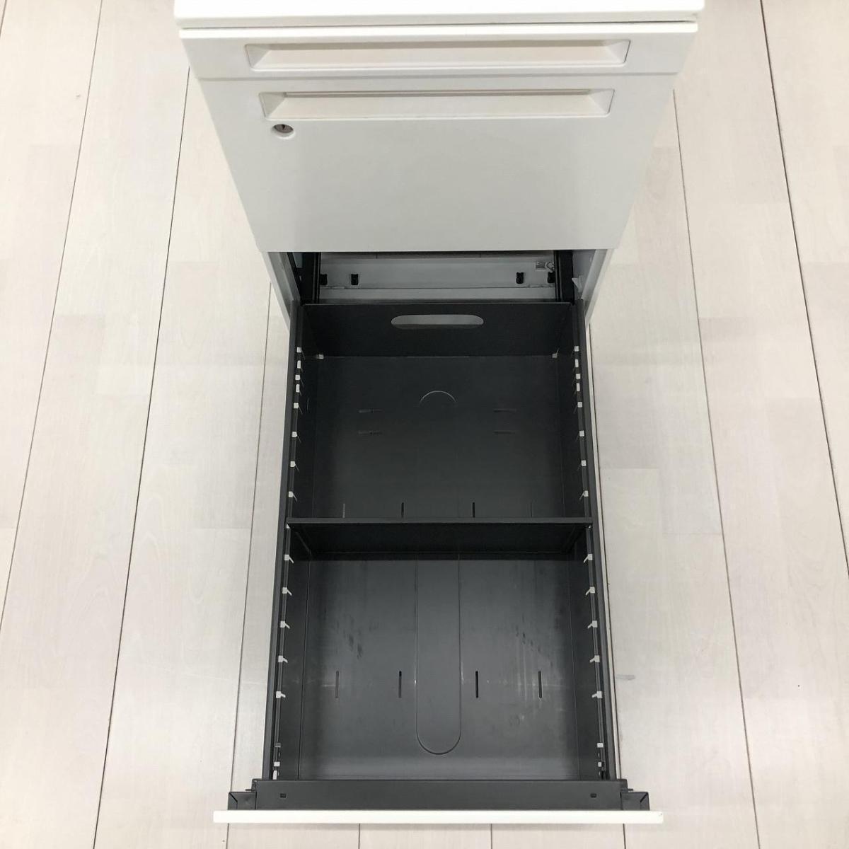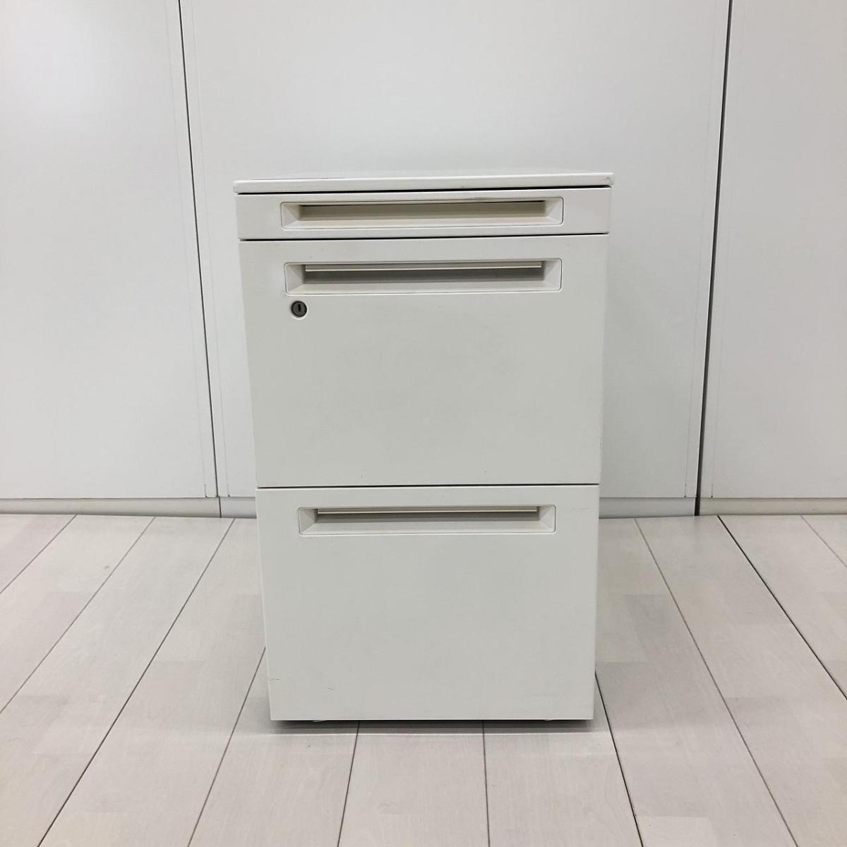 フリーアドレスの必須品!収納とワークスペースの拡張にオススメ!珍しい1段め深型タイプ! ■オカムラ/ アドバンスシリーズ(ADVANCE)/ホワイト 3段ワゴン フリアド用 H650㎜ シリンダー錠