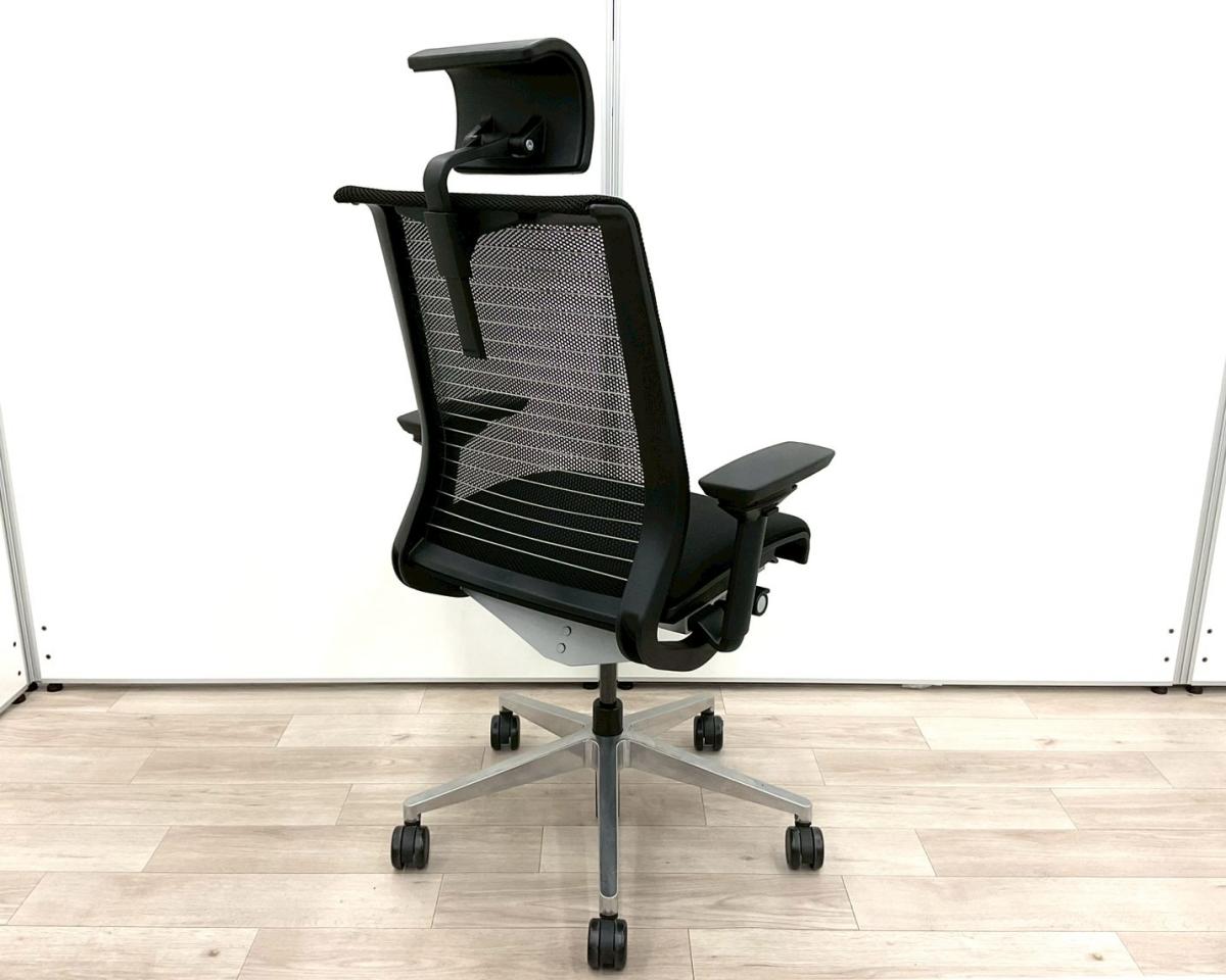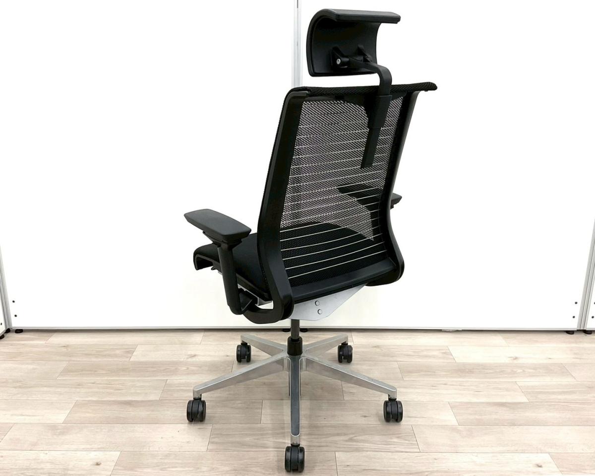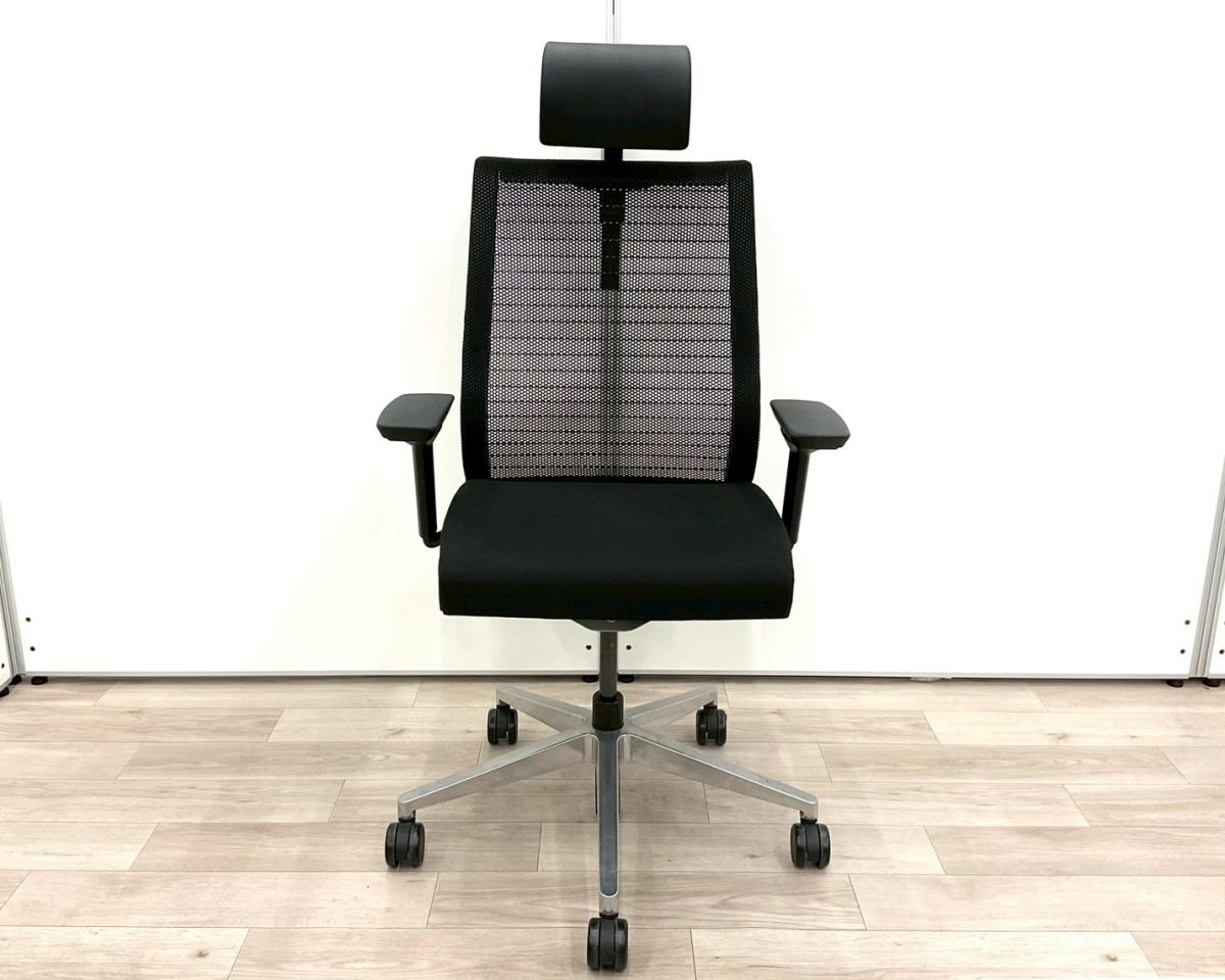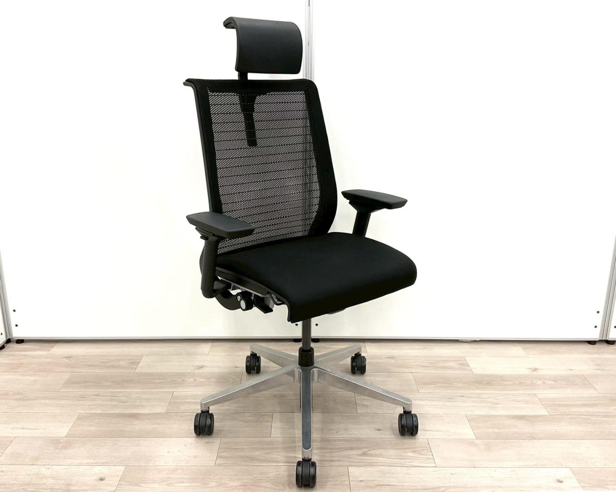 【あなたの座るを考える!ワイヤー構造が体を支える】■スチールケース(Steelcase)製 シンク(think)チェア 肘付ハイバック ■可動肘・ヘッドレスト付き ■ブラック