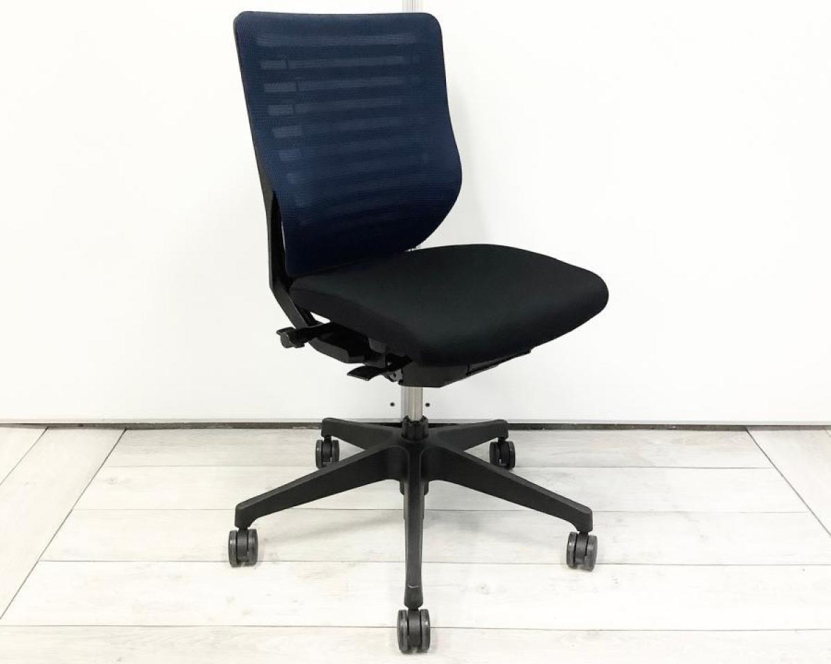 姿勢の変化をサポート!操作レスで体格にマッチする定番チェア ■イトーキ/エピオス(epios)/ネイビーブルー 肘無し ローバック ■背面クロス