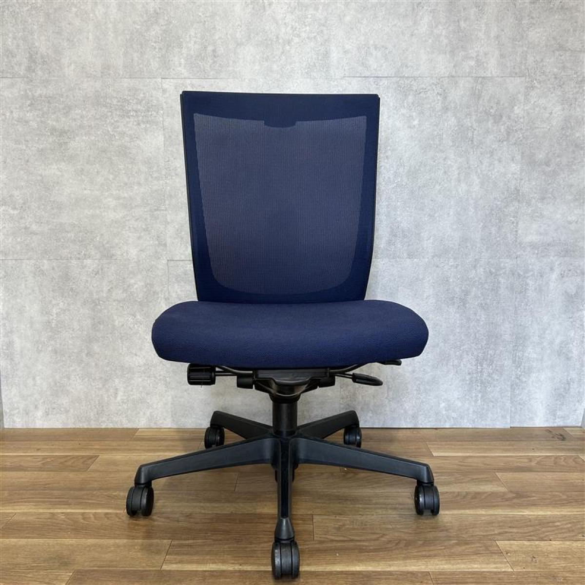 【長時間のデスクワークもランバーが快適にサポート!オフィスの定番チェア!起業や入替に!】■オカムラ(okamura)製 エスクードチェア (ESCUDO) 肘無し ハイバックチェア ■ランバー付 ■ダークブルー×ブラックシェル【AD】