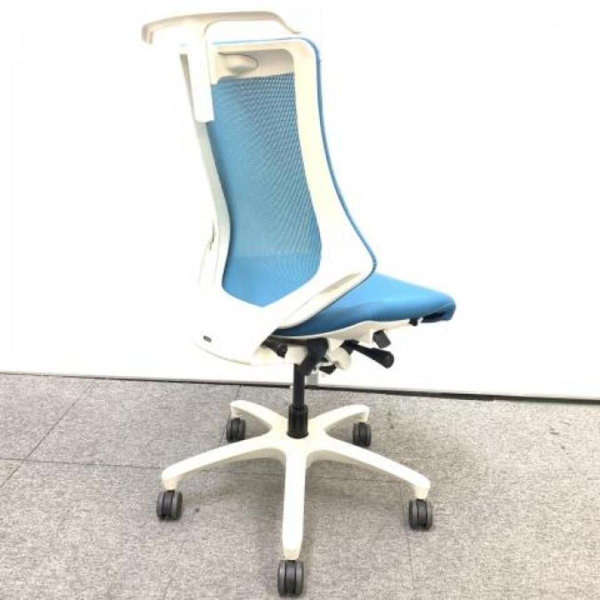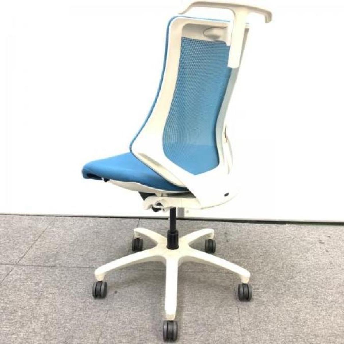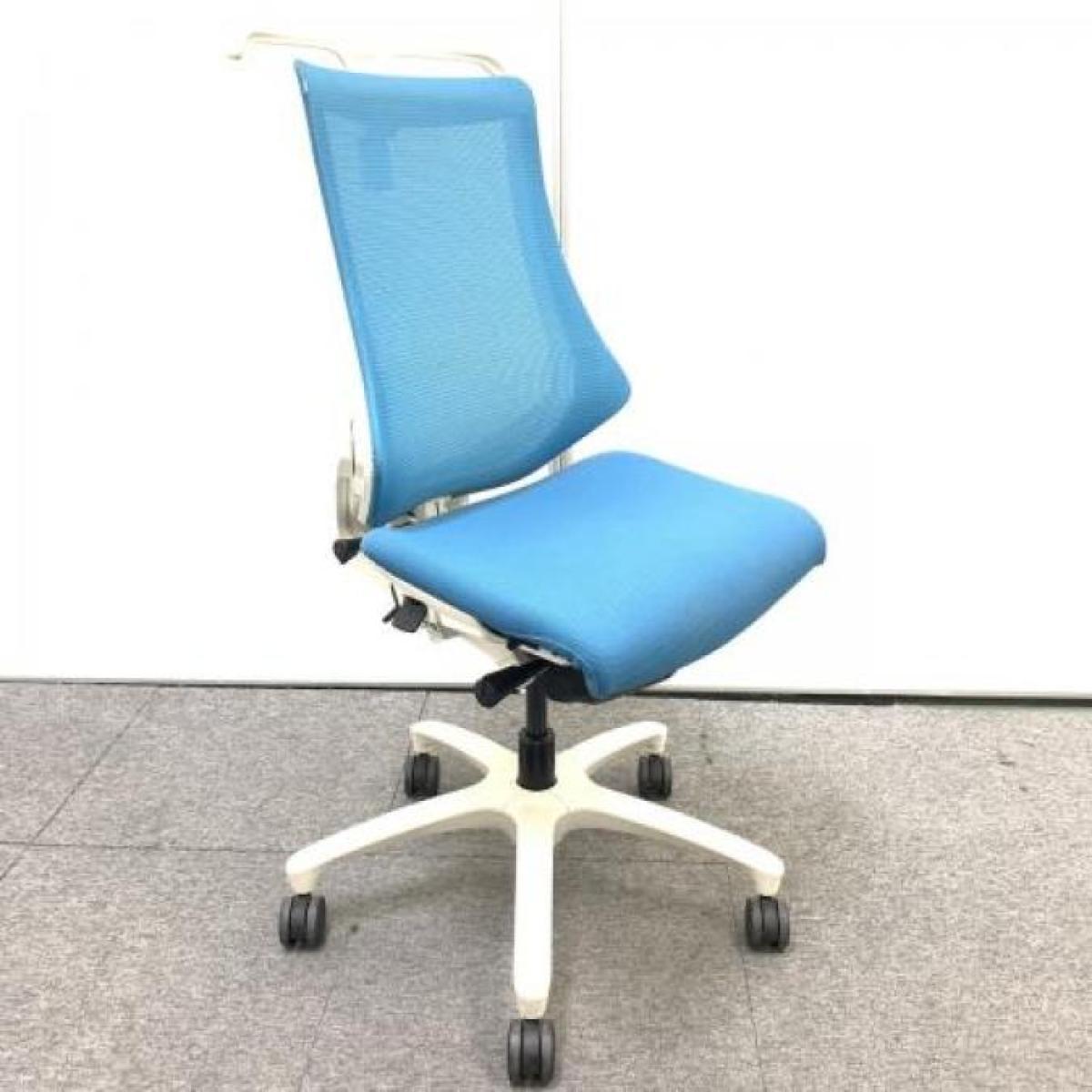 【在庫入れ替え】【高機能で座り心地も抜群!姿勢の変化にフレキシブルに対応】■イトーキ(ITOKI)製 エフチェア ハイバック 肘無し ■背面メッシュ ■ハンガー付き ■ストロングブルー × ホワイトフレーム