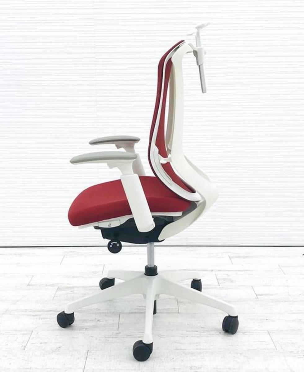 【いま人気のワーキングチェア!】■オカムラ シルフィーチェア 可動肘付 レッド ホワイトフレーム ハンガー付 ■新感覚のオフィスシーティング!まるで手を添えて包み込まれるような優しい座り心地!【Okamrua Sylphy】【在庫入替セール品!】- 川崎店