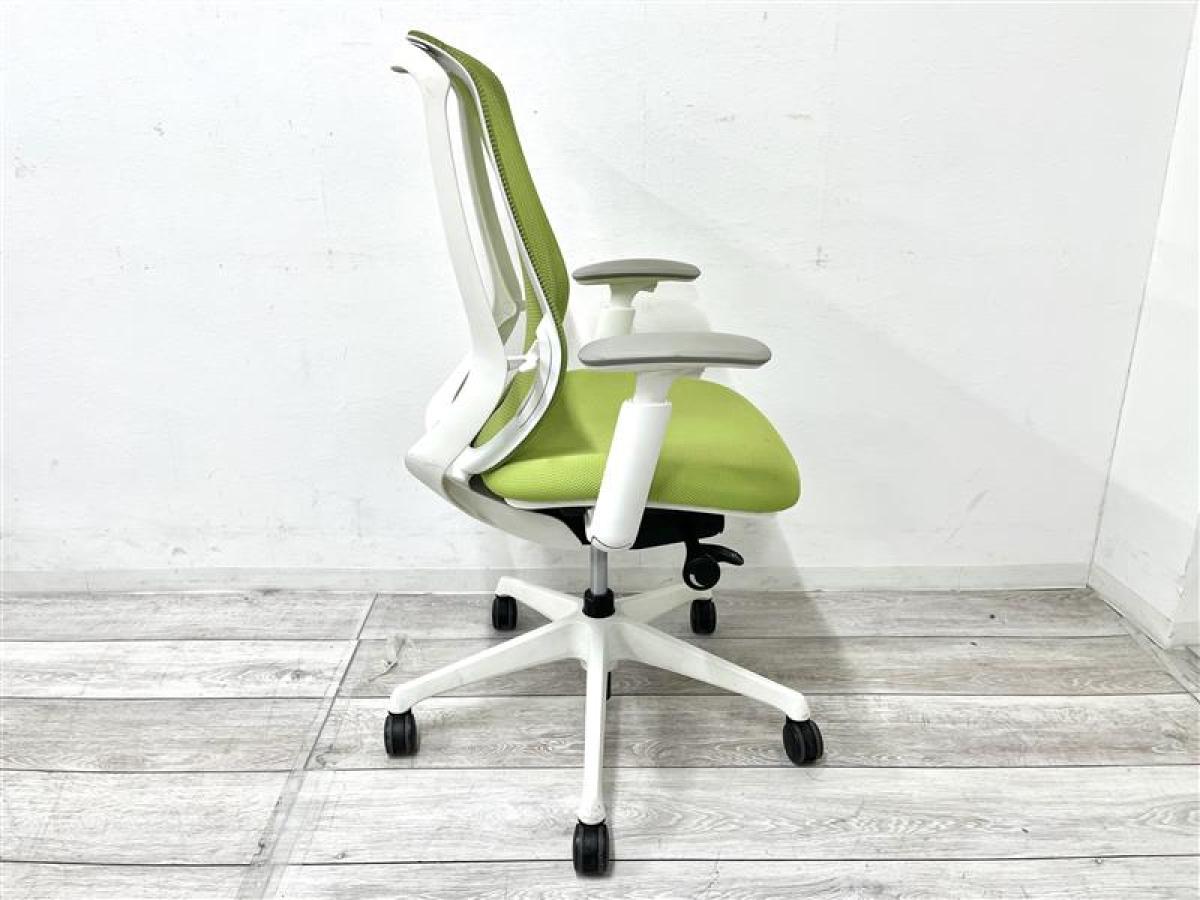 【超希少なワークヴェール付き!】オカムラ製品で最も人気を集める高機能メッシュチェア!集中力up! ■オカムラ/シルフィー(Sylphy)/ライムグリーン 肘付き ハイバック 背面メッシュ ■可動肘 ヘッドレスト付