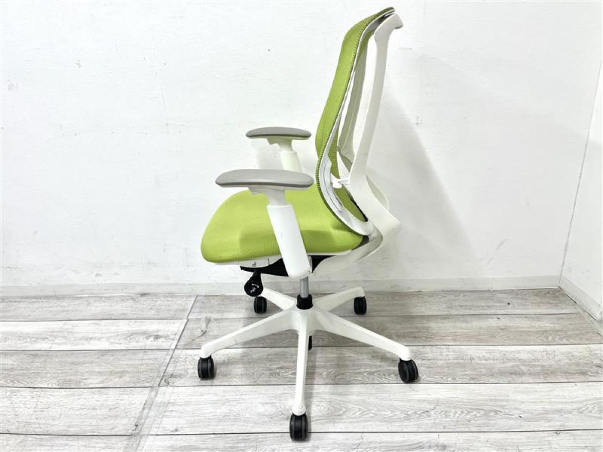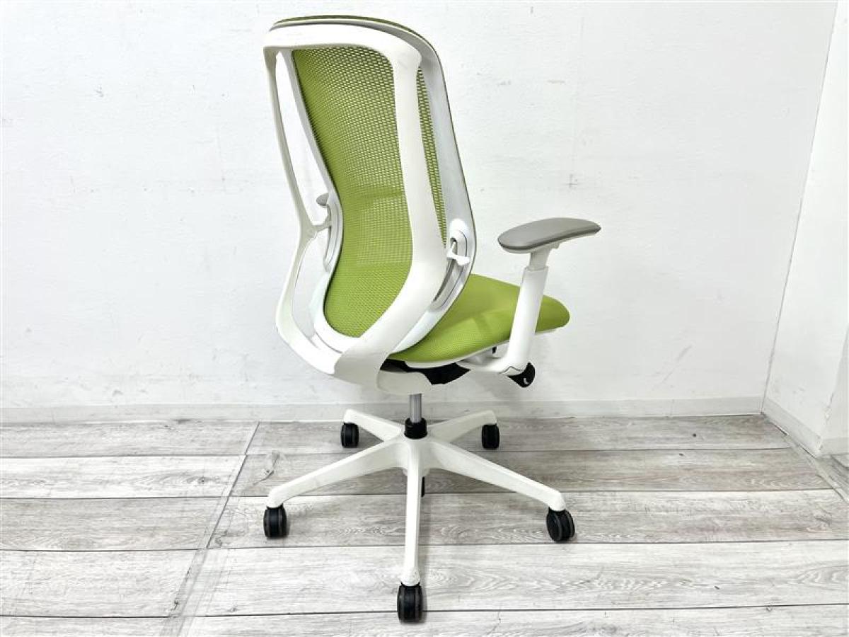 【前傾チルト機能付き!オカムラ製品で最も人気を集める高機能メッシュチェア!】■オカムラ(okamura)製 シルフィー(Sylphy) 肘付ハイバックチェア 背面メッシュ ■ライムグリーン ×ホワイトシェル