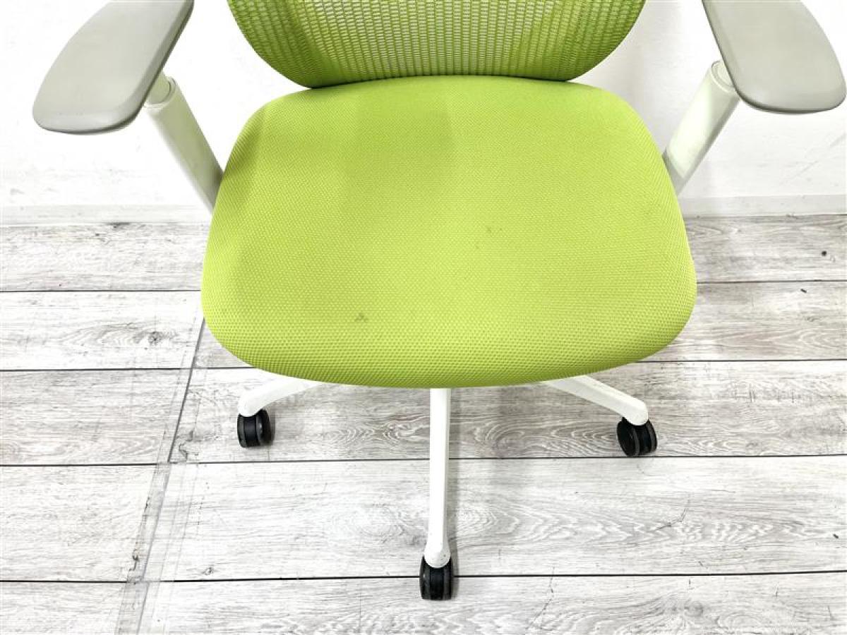 【2脚限定】【関西倉庫在庫品】【前傾チルト機能付き】【オカムラ製品で最も人気を集める高機能メッシュチェア!】■オカムラ(okamura)製 シルフィ(Sylphy)チェア 肘付き ハイバック 背面メッシュ ■可動肘 ■ライムグリーン×ブラックシェル【状態良好品!】