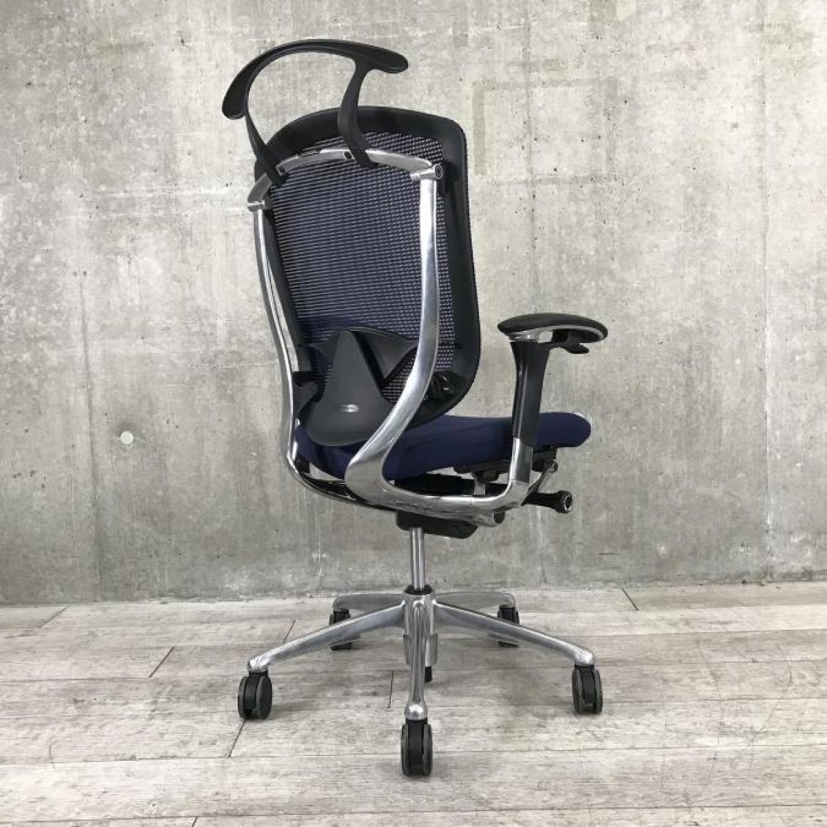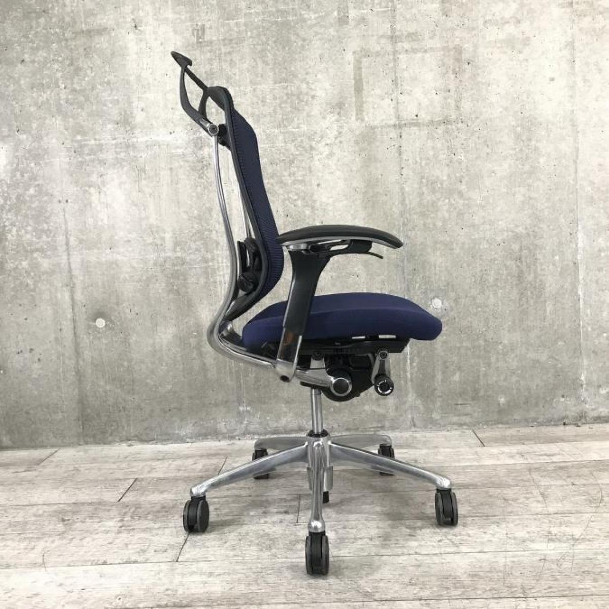 ★人気のヘッドレスト付タイプ入荷!【人間工学に基づいた快適な座り心地!】■オカムラ コンテッサチェア 可動肘付 ダークブルー 小型ヘッドレスト付 ポリッシュ ■【世界で認められた革新的タスクチェア!】【Okamura Contessa】