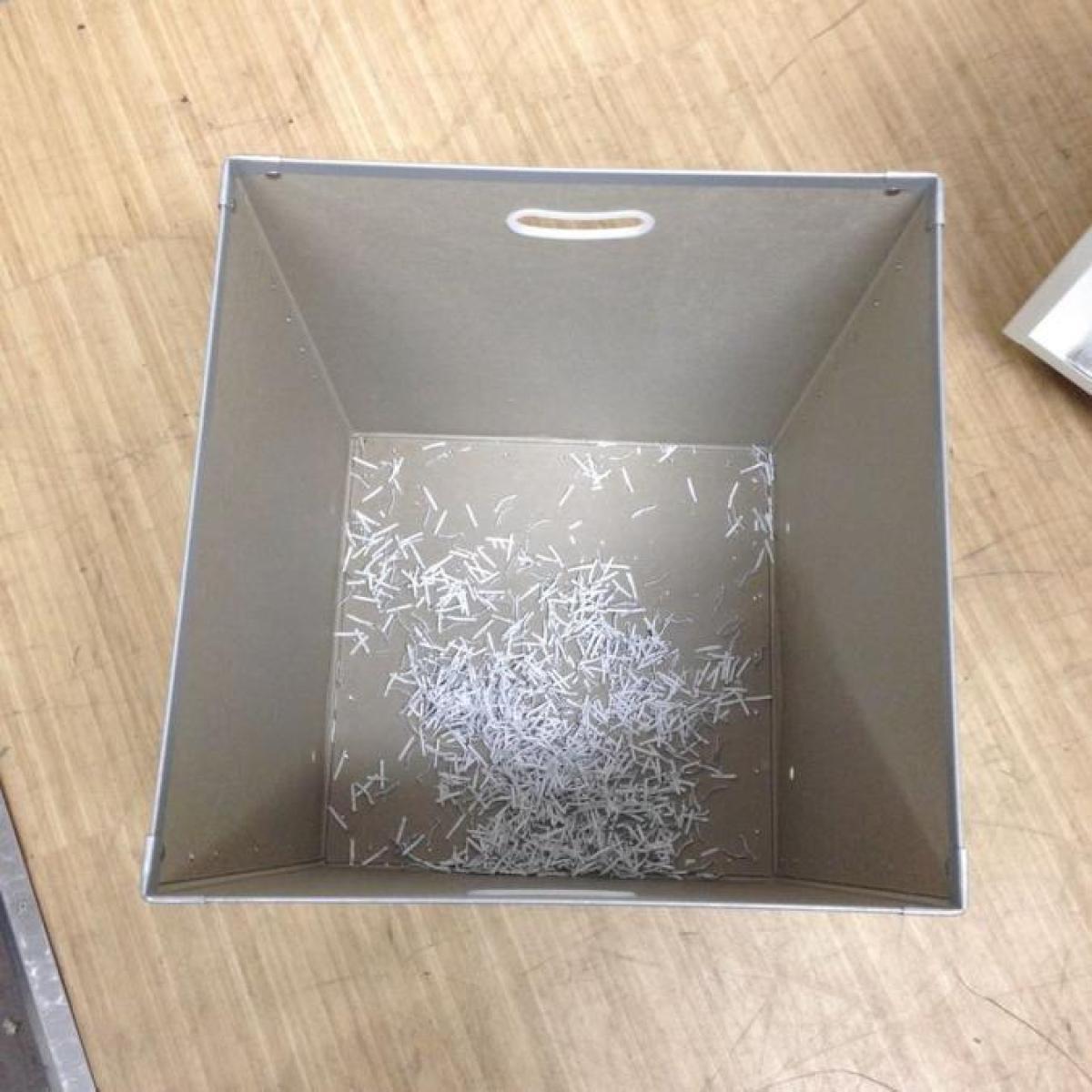 細断くずはミリ単位でチップ状に細断され、収容能力を高めます。
