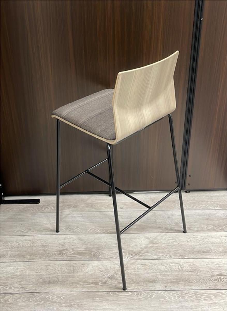 【在庫セール品・1脚限定】【T2】■オカムラ スイープ(Sweep) ハイチェア ■シェル:プライズウッドミディアム 座パッド:ダークブラウン フレーム:ブラック ※座面若干シミあり【お洒落なカラーのハイチェア! 休憩スペースにいかがですか!】在庫がある店舗一覧