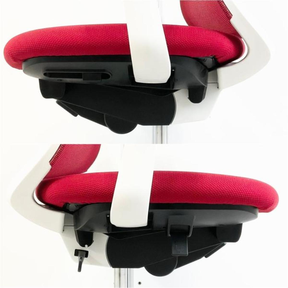 - 座面の高さは上下に90㎜、奥行は前後に50㎜調節可能。さらに骨盤を支えるポスチャーシート採用で着座時の前滑りを防ぎます。