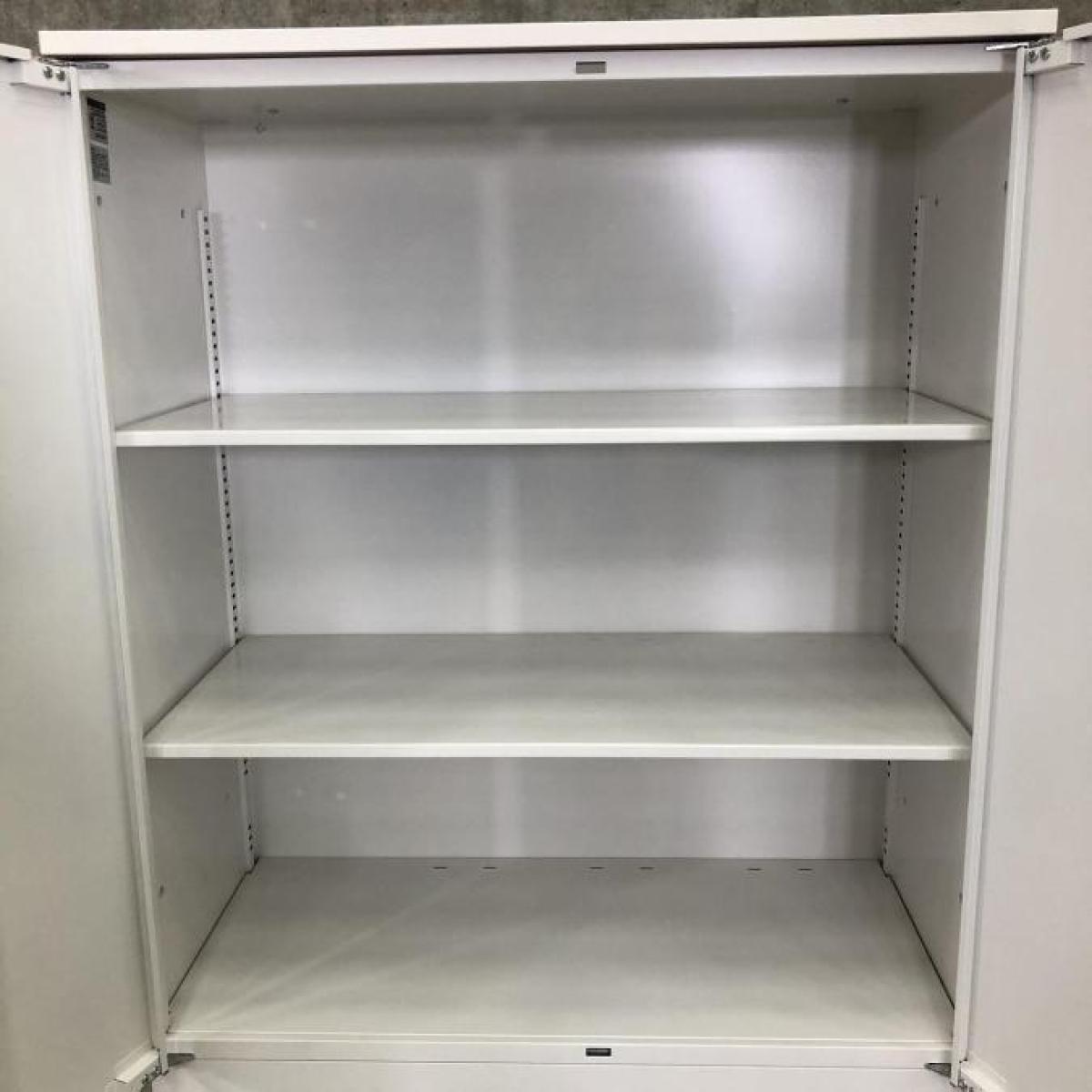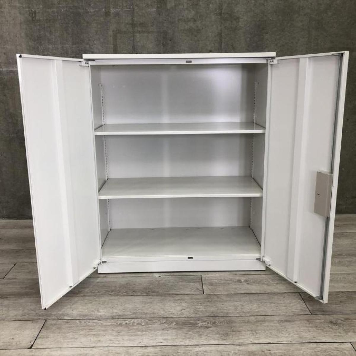 イトーキ製、シンラインシリーズの両開き書庫、人気のホワイトカラーです。