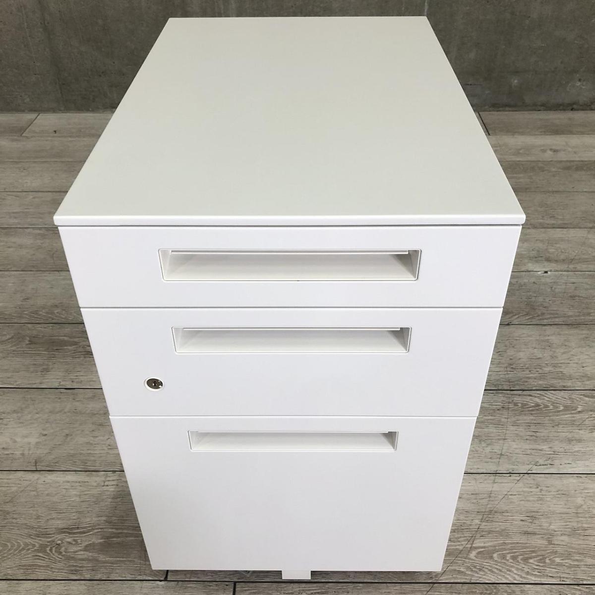 【シンプルなデザインはどんな空間にもマッチします!平机のお供としてもオススメ!】■イナバ(Inaba)製 Sワゴンシリーズ 3段ワゴン デスクインワゴン ■ホワイト ■シリンダー錠 オフィスバスターズ 神戸店