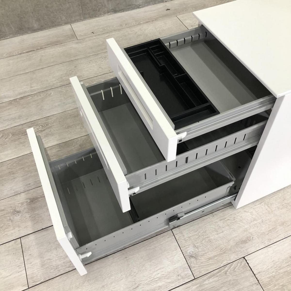 - 一部不具合ありその脇机・ワゴンの本来の効用を果たすための機能以外の一部が使用不可な状態。(例、引出が開閉しづらい、 キャスターロック機能使用不可、ラッチ不良 等がある。)