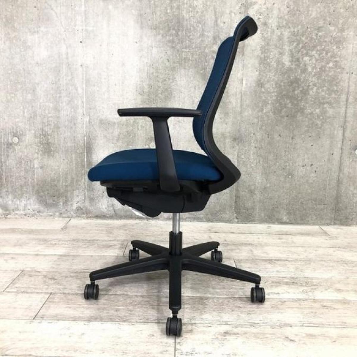 ★コクヨ製 ミトラ プルシアンブルー ブラックフレーム 肘無し ローバック 背面メッシュ テレワークにも最適! 快適な座り心地と充実機能! 肘無しローバックチェア!!