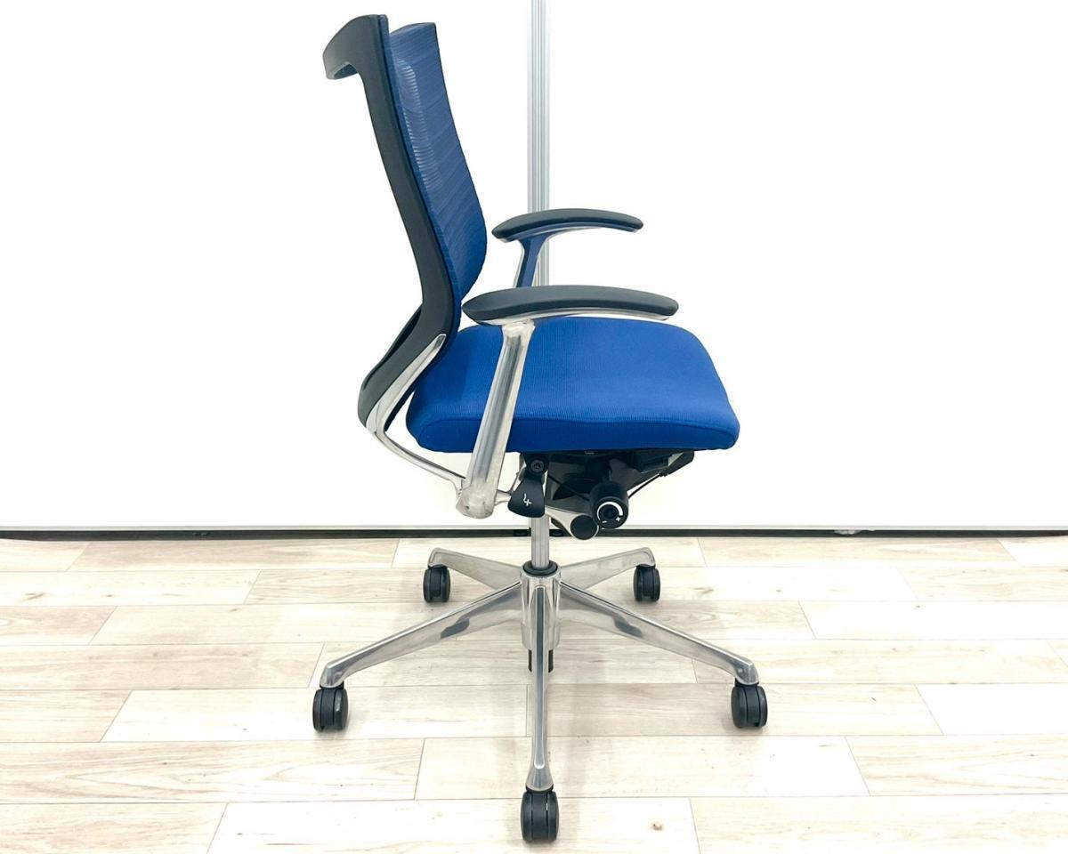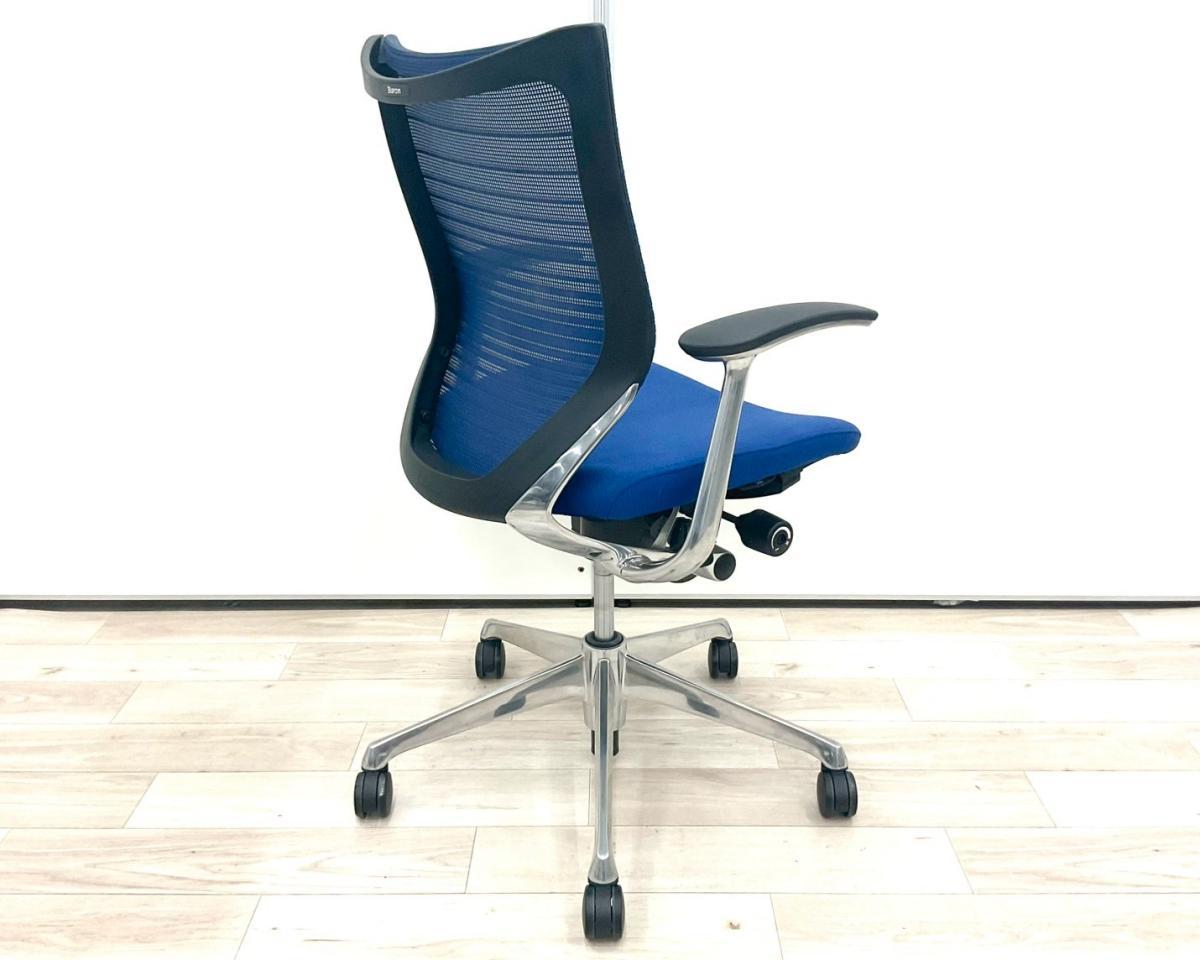 【オフィスの執務室や会議室におすすめ】オカムラ/バロン/ブルー/グラデーションメッシュ/デザインアーム/ポリッシュフレーム