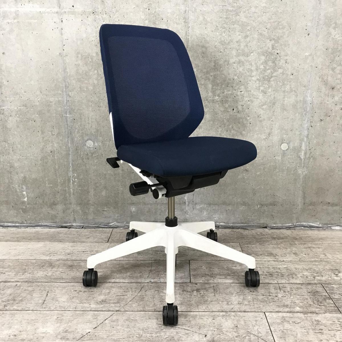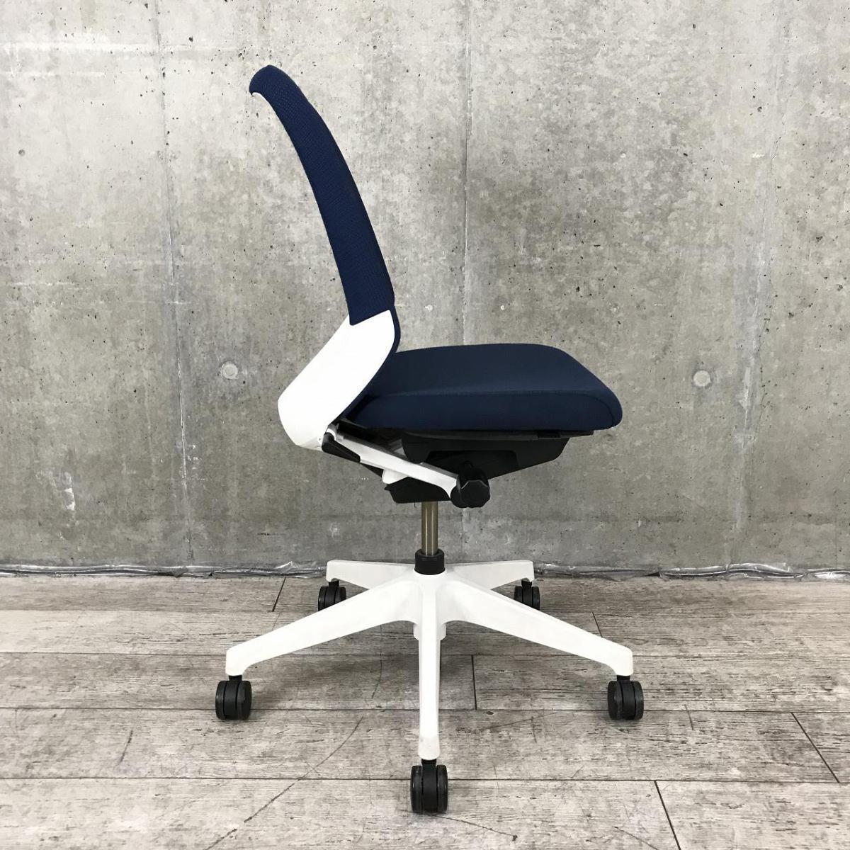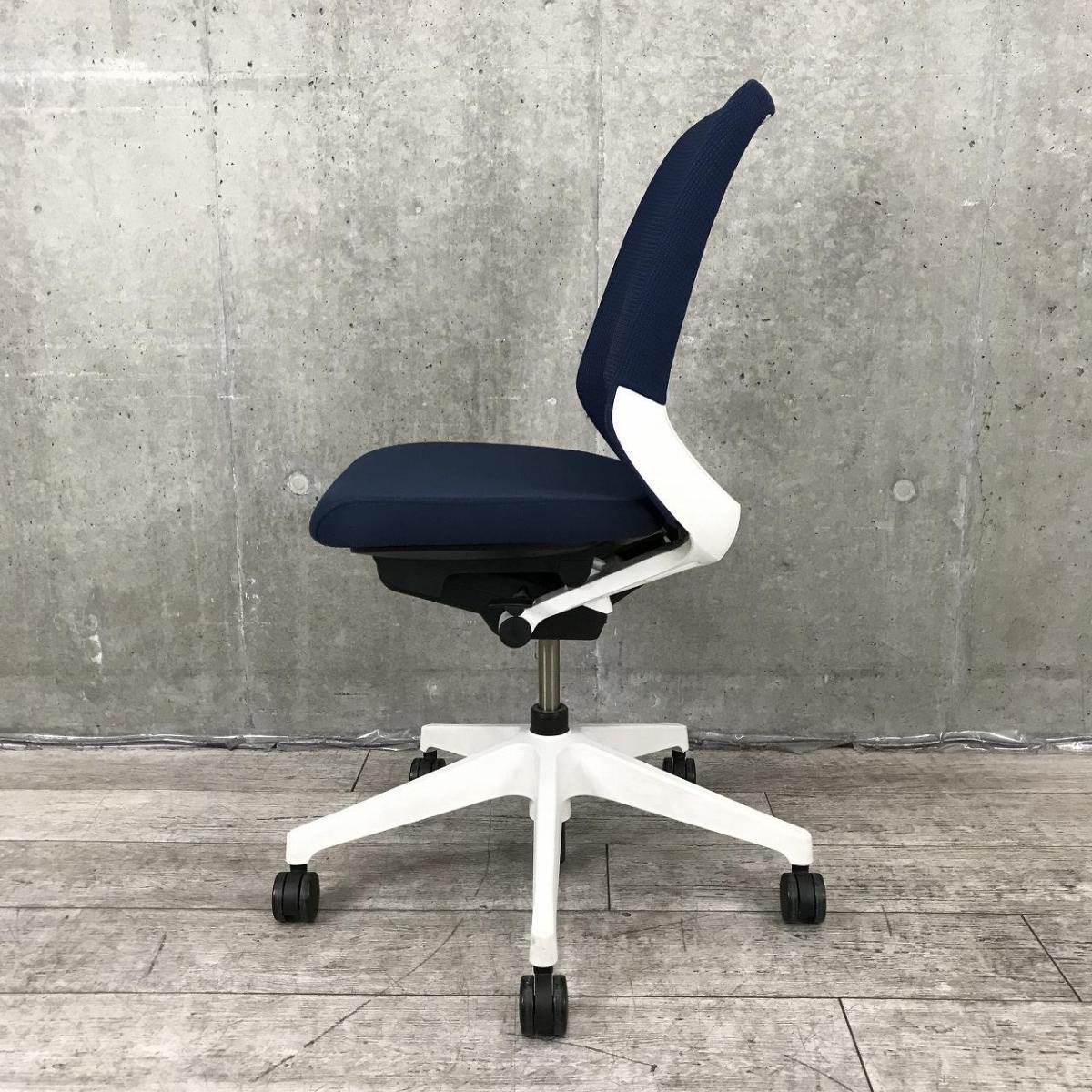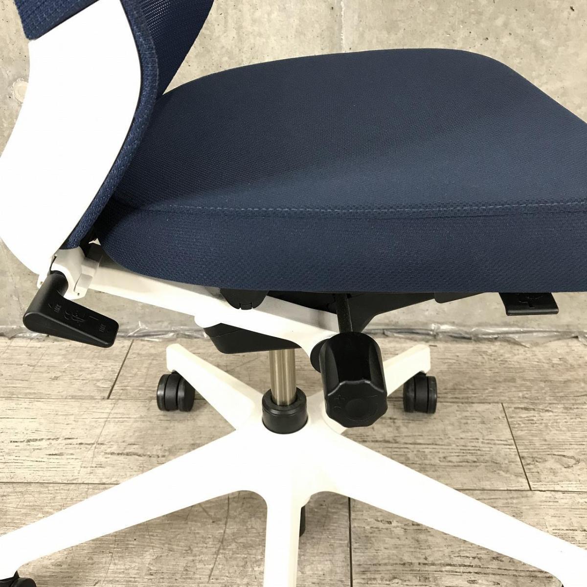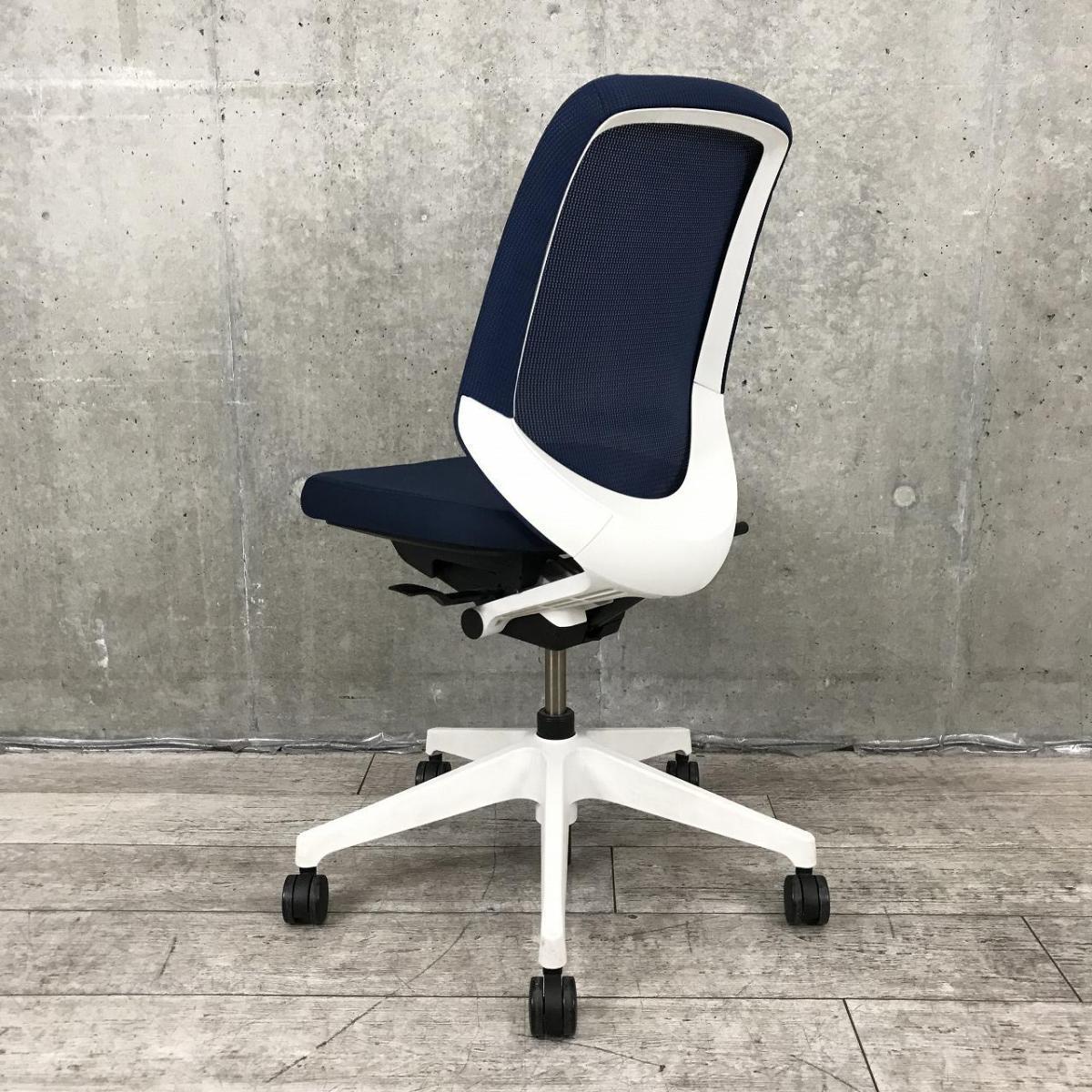 【定価約8万円】【オフィスの今を、美しく快適に!落ち着きのある新世代ワークチェア】■イトーキ(ITOKI)製 ノートチェア 肘無ハイバック ■ネイビーブルー×ホワイトシェル ■背面メッシュ