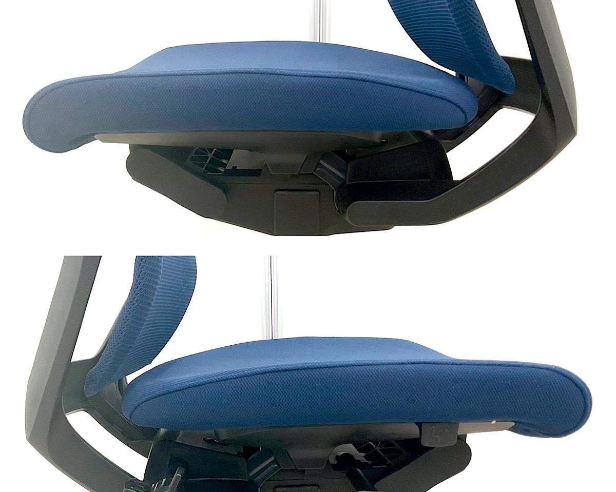 - 座面下のレバー操作により、座面を50mmのストローク(16.7mmピッチ)で好みの位置に調節できます。体格や作業姿勢に合わせたポジション設定が行えます。