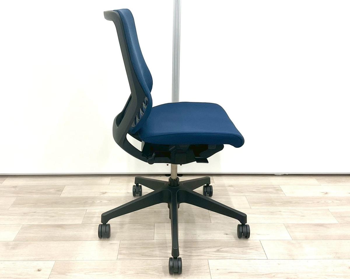 ★イトーキ製 エピオス(EPIOS) ネイビーブルー ローバックサイズ 背面クッション 操作レスな体重感応メカを搭載! 体格にあわせた最適な座り心地! 肘無しローバックチェア!!