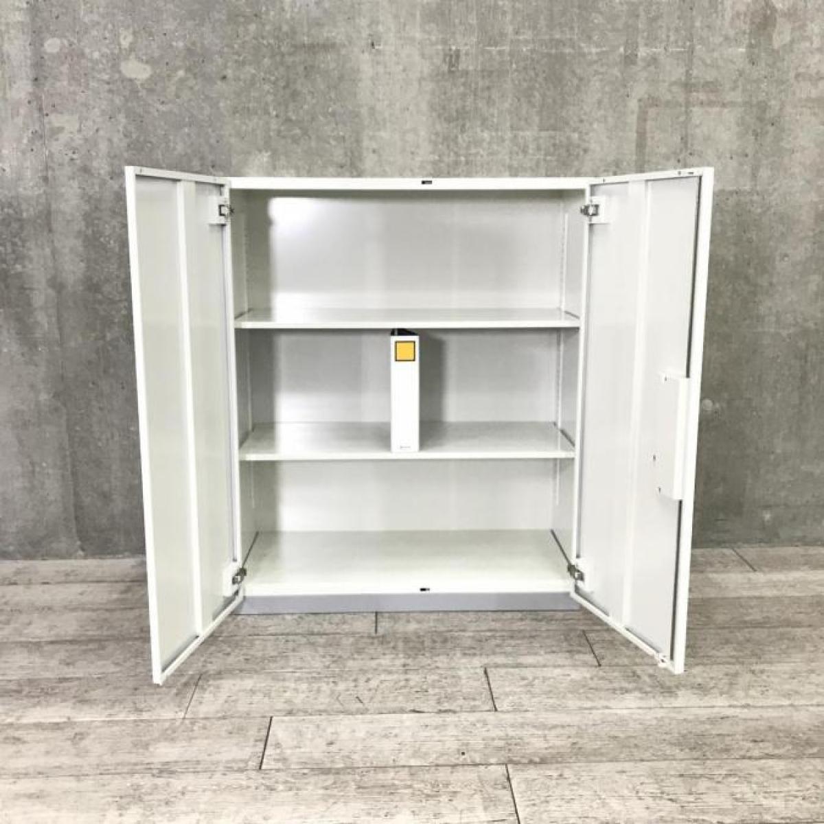 人気のホワイト色、観音開き扉タイプの書庫です。