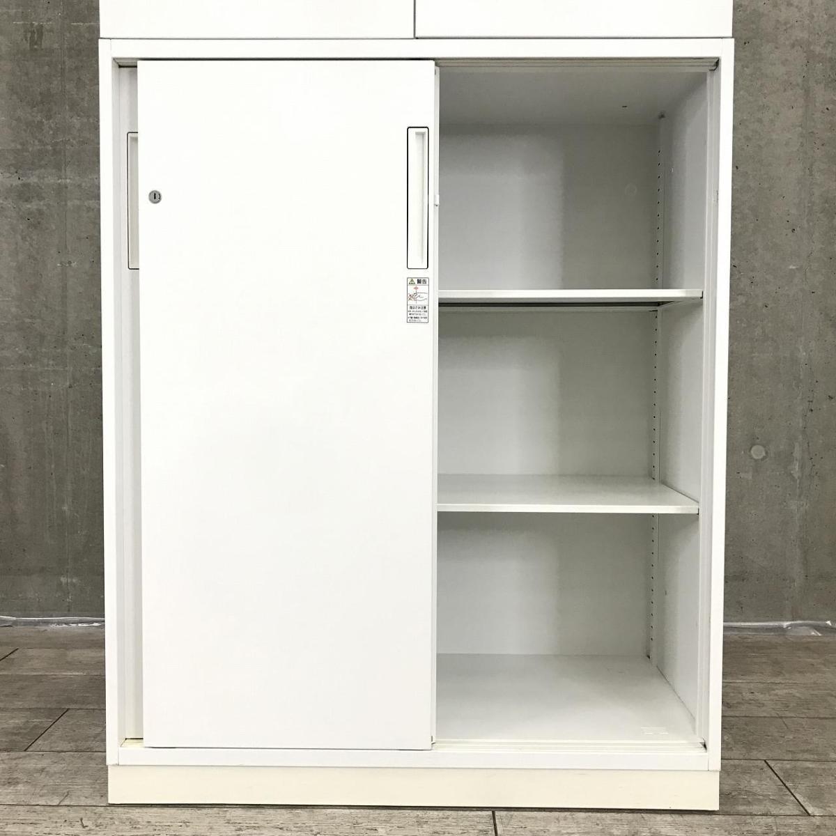 【カギ作成可能!】【収納力抜群の書庫セット! 引き違い書庫+引き出しタイプの人気の組み合わせ!】■コクヨ(KOKUYO)製 エディア(EDIA)シリーズ 引き違い書庫+3段ラテラル書庫 書庫セット ハイキャビネット H2150㎜ ■ホワイト ■シリンダー錠