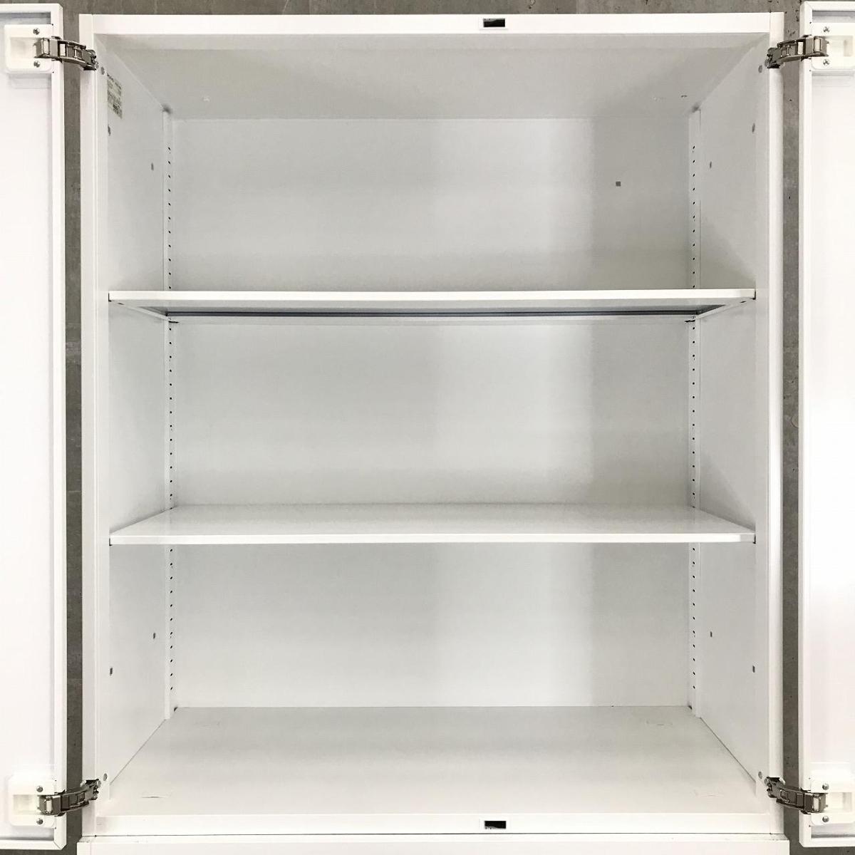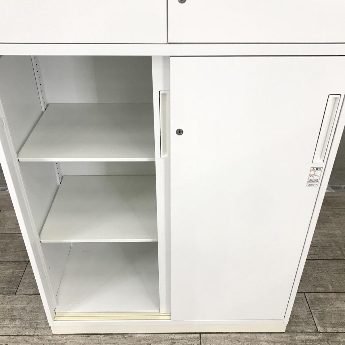 上段が両開き(観音開き)、下段が引き違い戸タイプのキャビネットです。