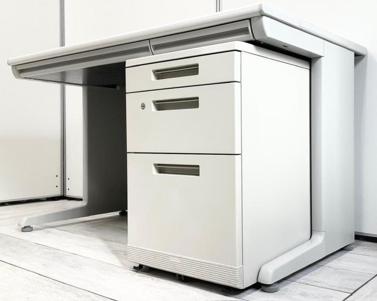 【横幅1200サイズ】定番のオフィスデスク! オカムラ/SD-V/平机+3段ワゴン/ライトグレー【倉庫在庫品】【TH】- 高崎サテライト