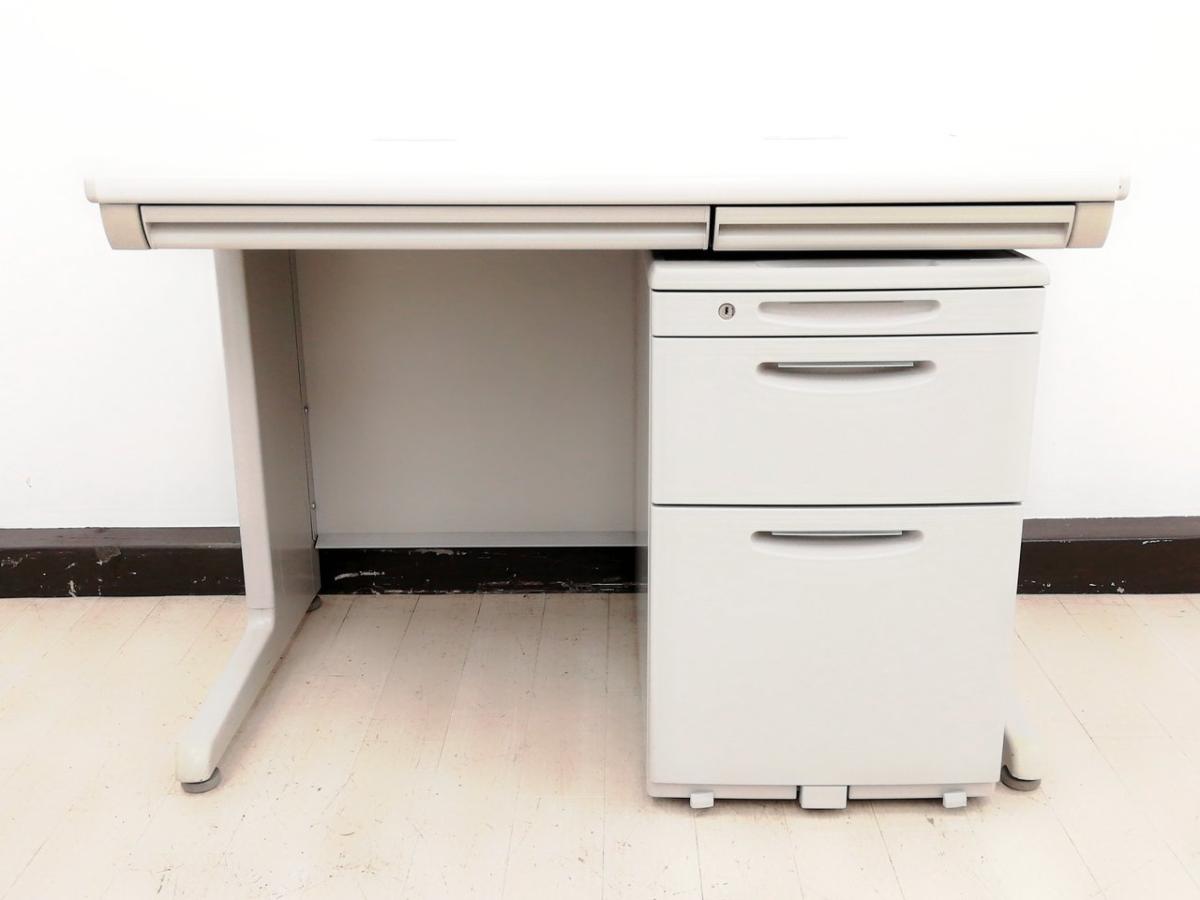 【カギ作成可能!】【コンパクトでスタンダード!使いやすい引き出し付きデスク!】■オカムラ(okamura)製 SD-Vシリーズ 平机+ワゴンセット(片袖机) 引き出し付き W1000㎜ ■ライトグレー ※ワゴンは在庫状況によって変動致します。【入替セールにつき20%OFF!】