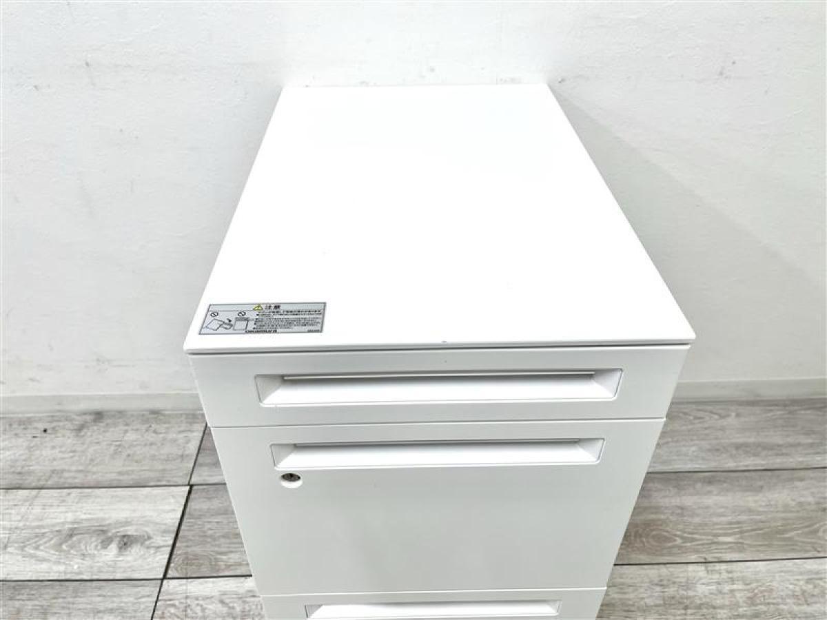 【定価約8万円】【デスク上の整理に便利!フリーアドレスデスク用3段ワゴン!】■オカムラ/アドバンス ■ホワイト 3段ワゴン シリンダー錠
