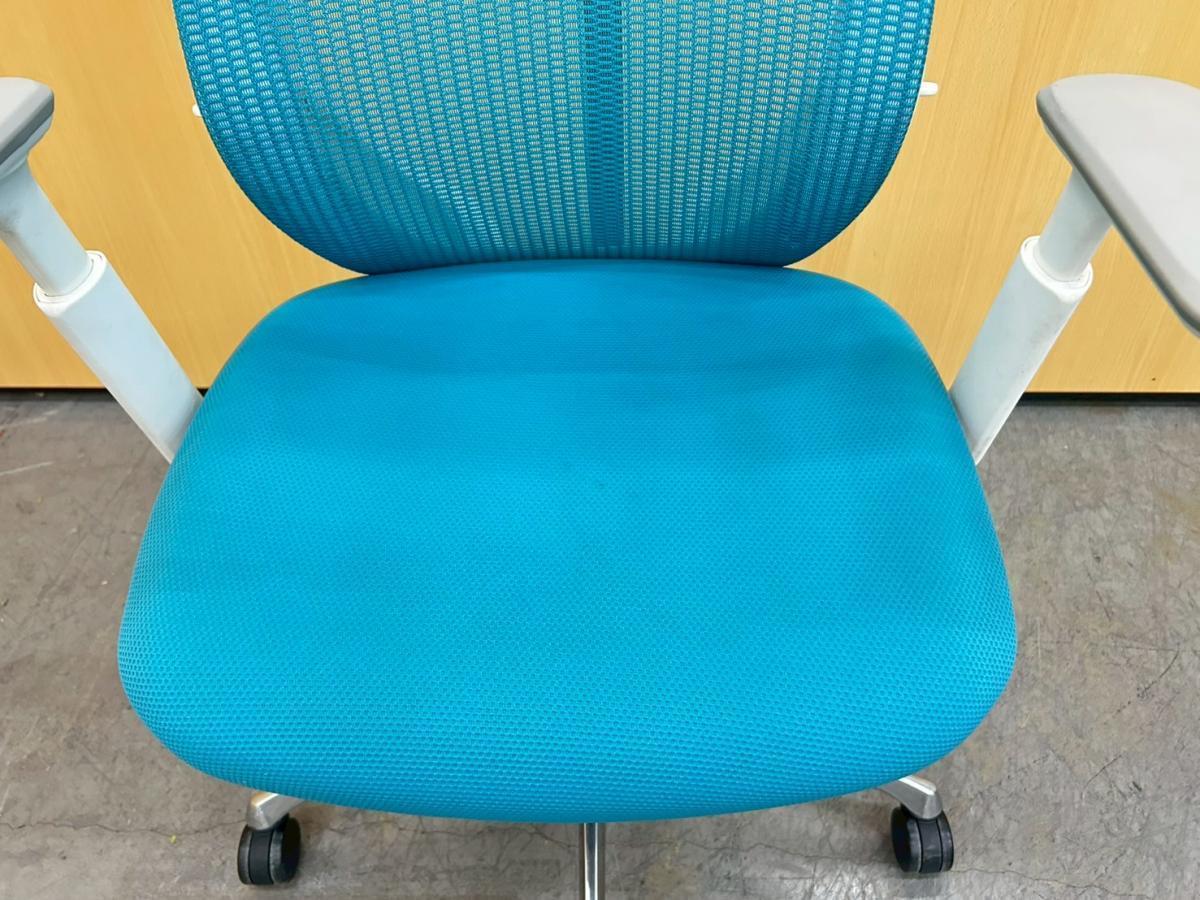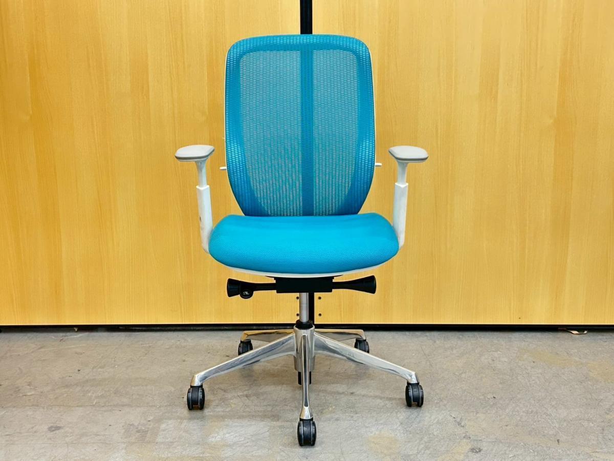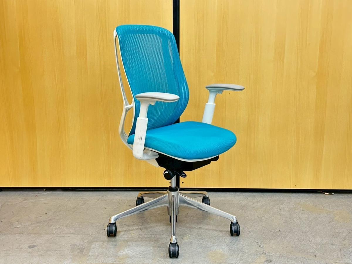 【快適とスタイルを両立!長時間作業に最適な高機能!】大人気チェアがヘッドレスト付きで入荷! ■オカムラ/シルフィーメッシュ/ブルー 固定アームレスト付
