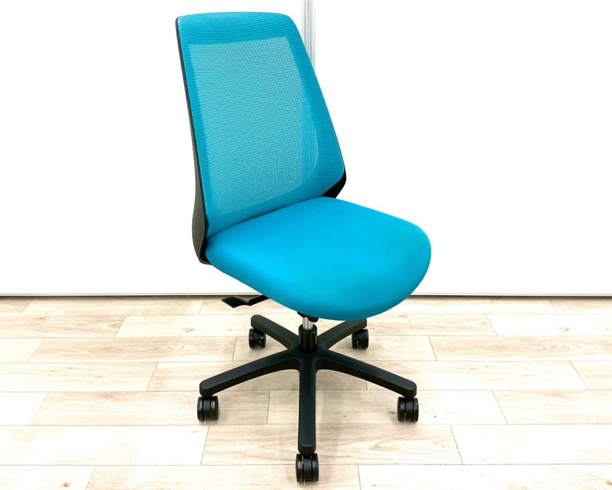 【座りやすくてコンパクト! 肩回りが動かしやすい背面メッシュの人気チェア!】■イトーキ(ITOKI)製 ノナ(nona)チェア 肘無ハイバック ■ストロングブルー×ブラックシェル ■背面メッシュ