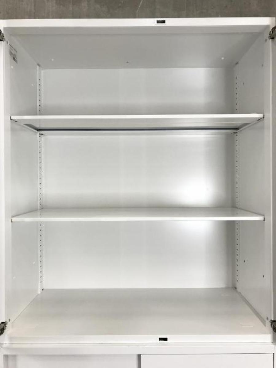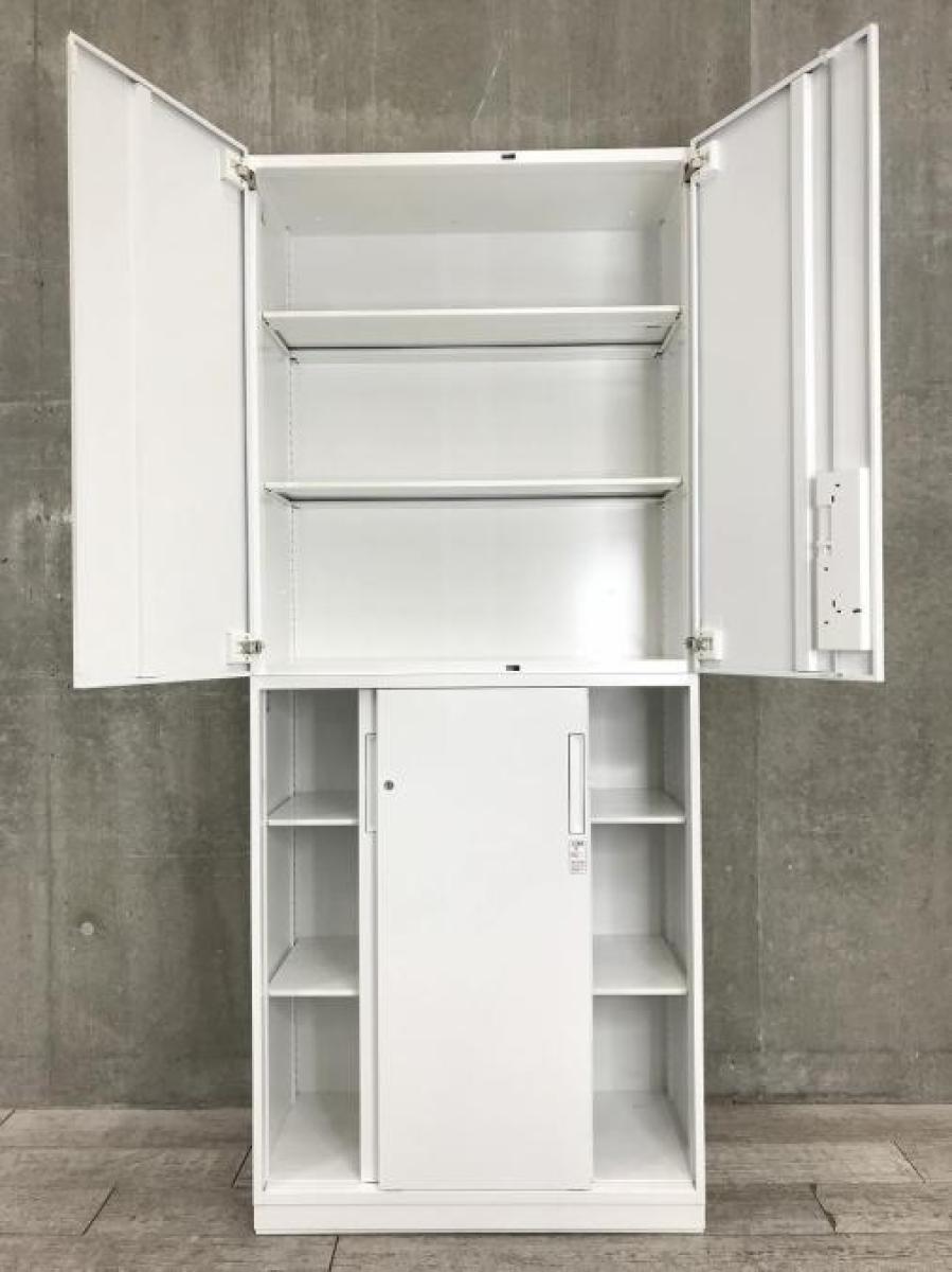 【オフィス書類をたっぷり収納できる、人気の書庫セット!】■コクヨ(KOKUYO)製 エディア(EDIA)シリーズ 上下書庫セット(上:両開き + 下:2枚引戸) ■シリンダー錠 ■ホワイト 【耐震施工もご相談ください!】オフィスバスターズ 水戸サテライト 水戸市、日立市、ひたちなか市、鹿嶋市、神栖市、牛久市、古河市、結城市、東海村、つくば市- 水戸サテライト