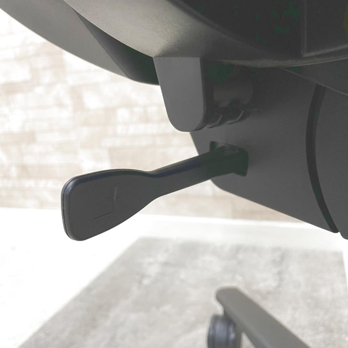 (ファブリック) - レバーを上下させることで、内蔵されたランバーサポートプレートの押し出し量を2段階(15㎜)切り替えることができます。