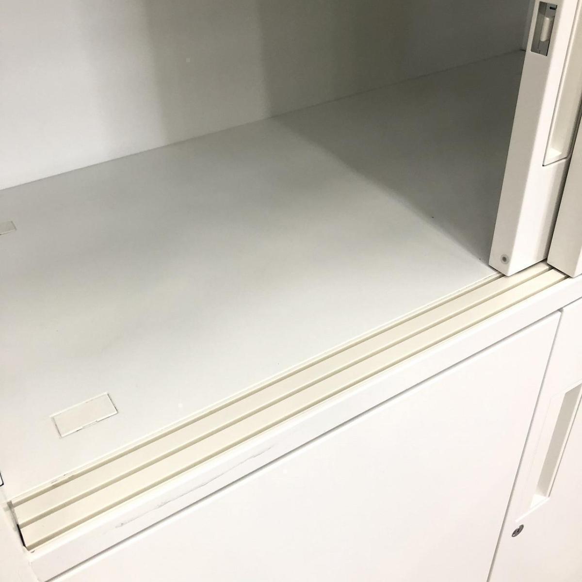 ★【レア】【2台限定】コクヨ製 エディア ホワイト シリンダー 大容量収納の定番! エディアシリーズのキャビネットセット! ハイキャビネット ガラス引き違い+3段ラテラル 上下書庫セット!!