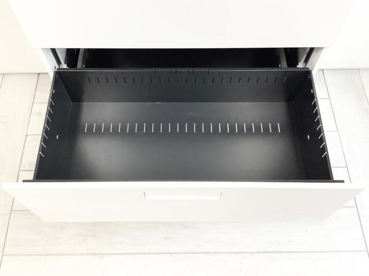 - 両開きタイプは扉が180度開き、通路の邪魔になりません。ラテラルタイプは引出しが限界まで出せ、出し入れ楽々。