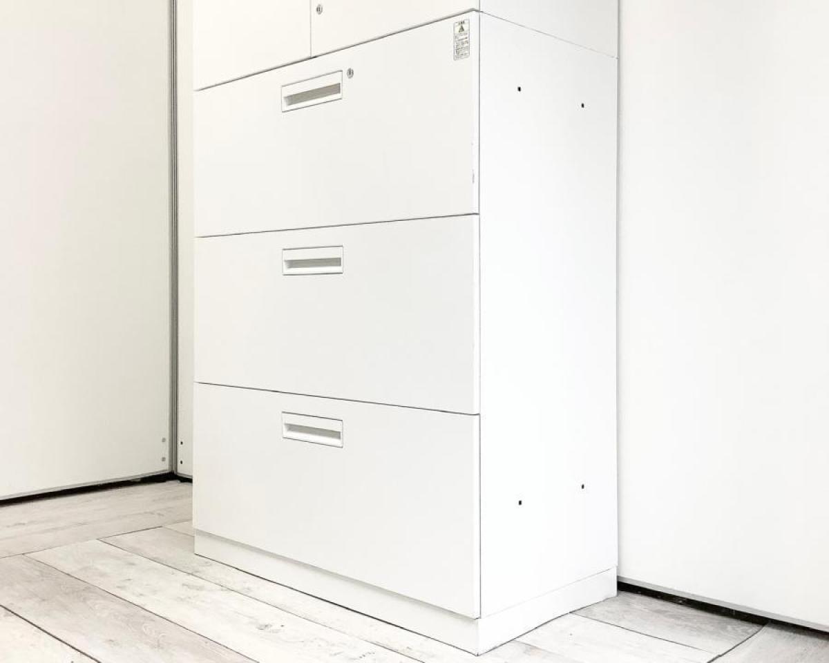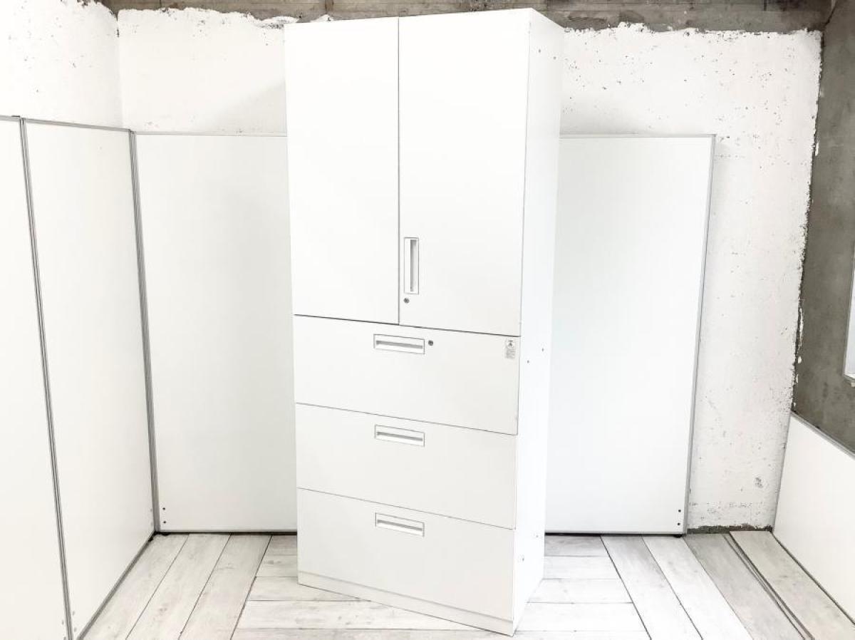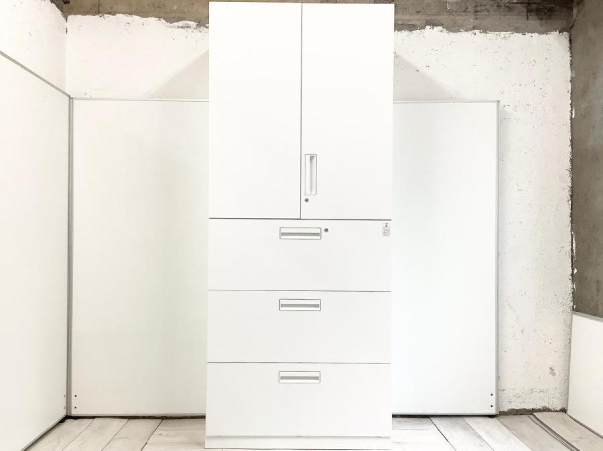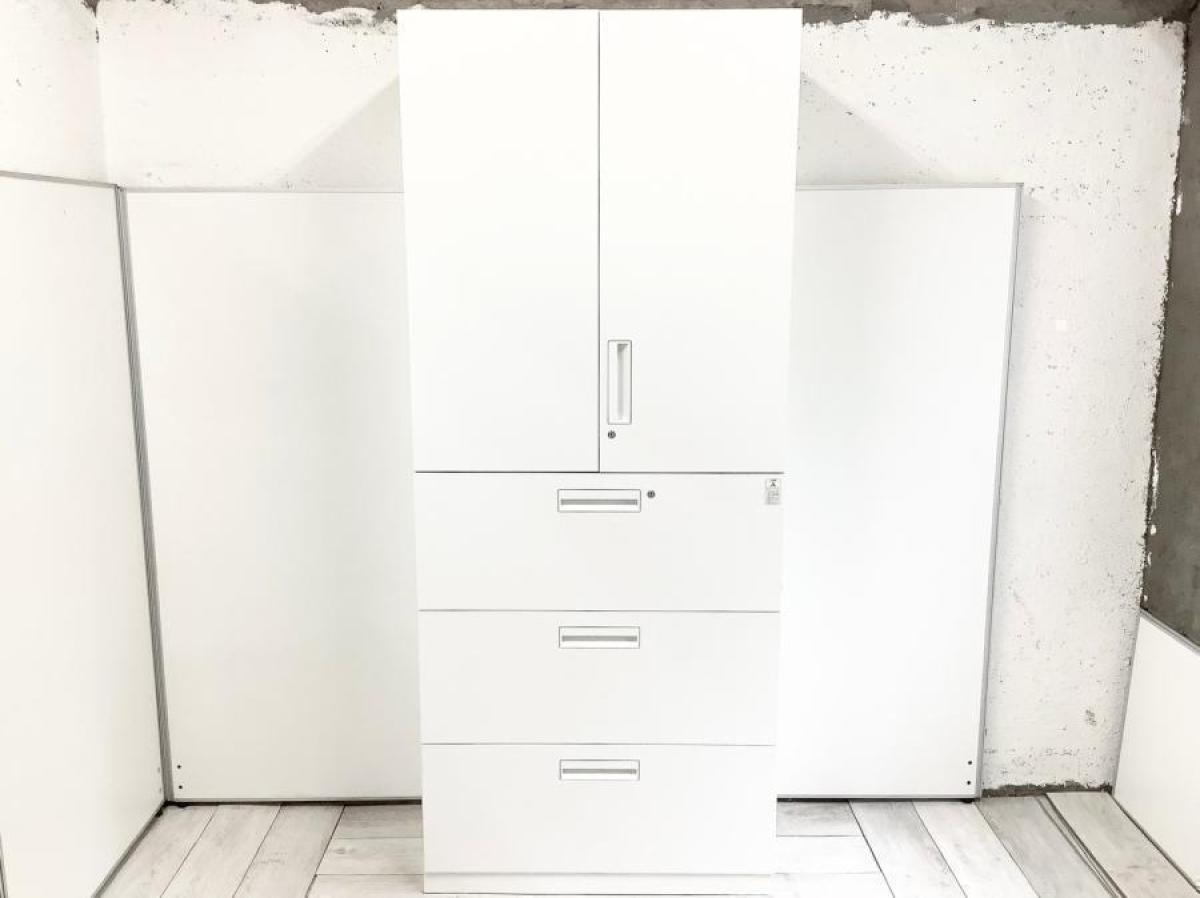 【収納量抜群の書庫セット!観音開き+引き出しタイプの人気の組み合わせ!】■コクヨ(KOKUYO)製 エディア(EDIA)シリーズ 両開き+3段ラテラル 書庫セット ハイキャビネット ■シリンダー錠 ■ホワイト オフィスバスターズ 水戸サテライト 水戸市、日立市、ひたちなか市、鹿嶋市、神栖市、牛久市、古河市、結城市、東海村、つくば市