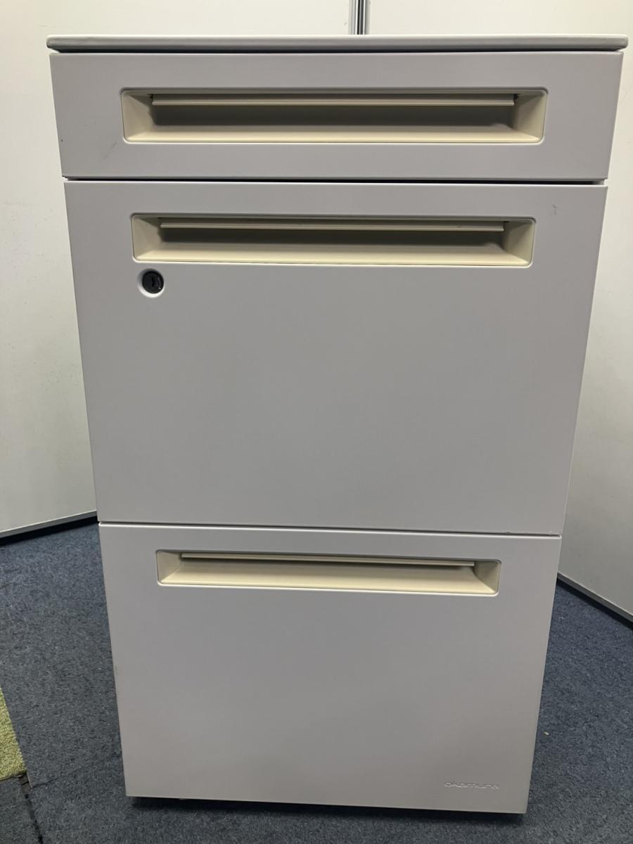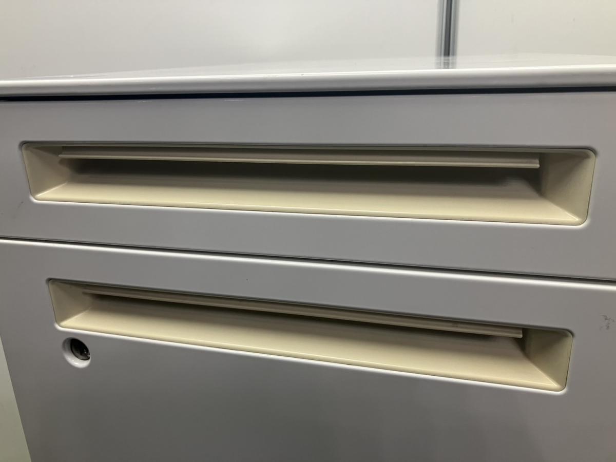 【訳アリ品】【フリーアドレスの必須品!収納とワークスペースの拡張にオススメ!】■オカムラ(okamura)製 アドバンスシリーズ 3段ワゴン フリアド用 ■高さ:680mm ■色:ホワイト ■シリンダー錠 ■取っ手に日焼けがあります!- 名古屋本店