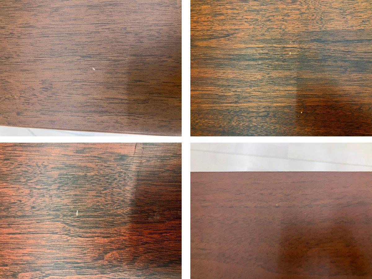 - 目立つ箇所あり傷・凹みが多数、深い傷・凹みが一部ある。(例、天板、幕板、棚板、サイド部分、脚部等にある。)