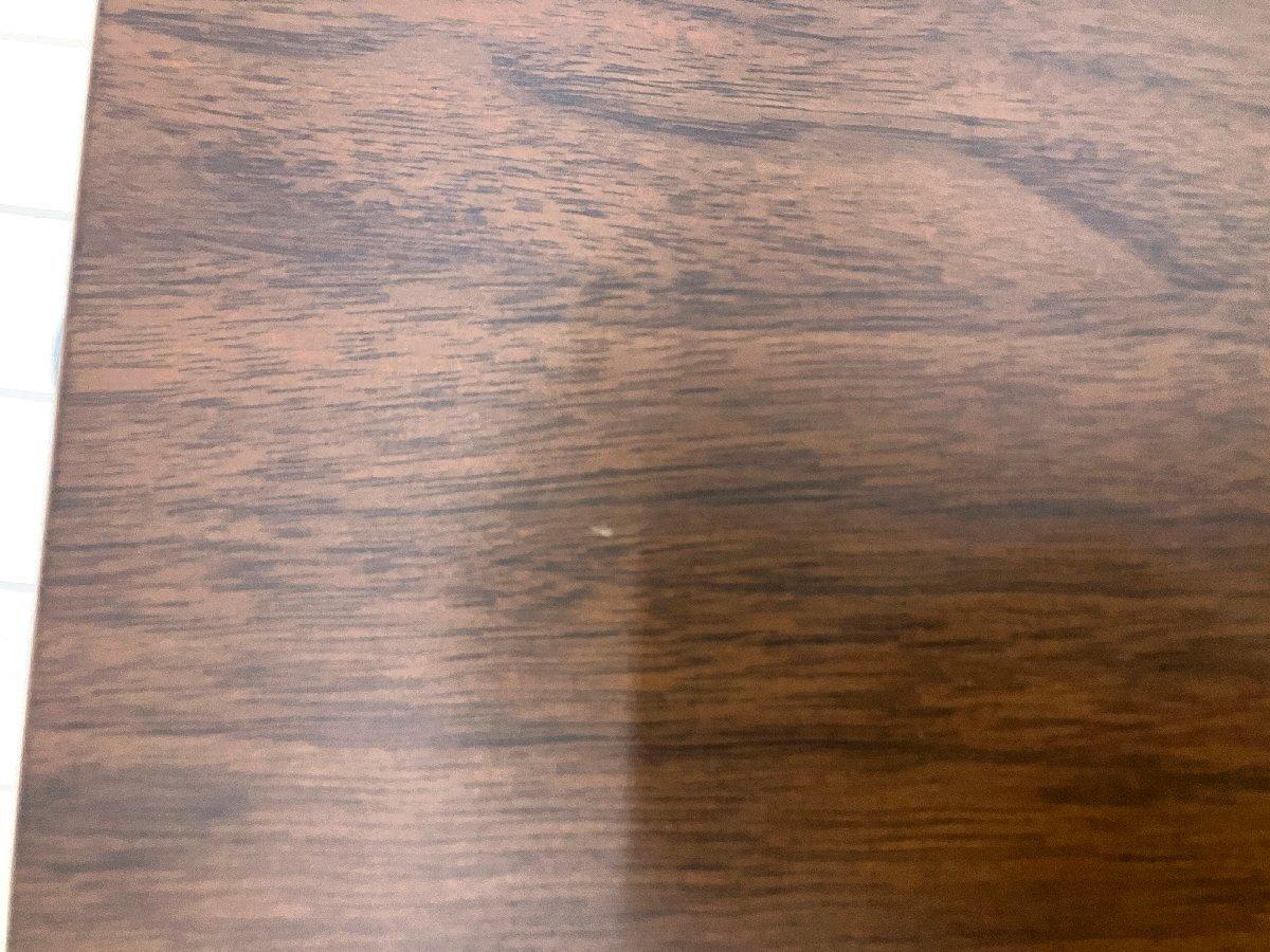 - かなり強い濃い黄ばみ・変色が商品全体にある。(例、天板、幕板、棚板、サイド部分、脚部等にある。)