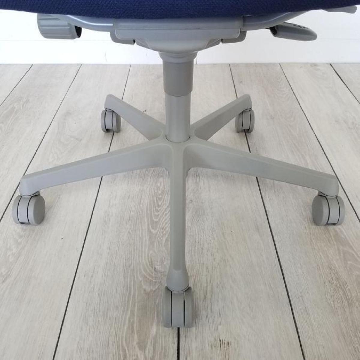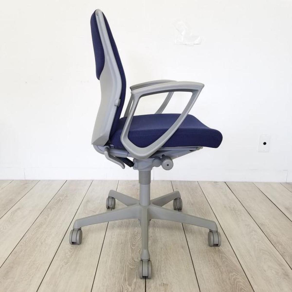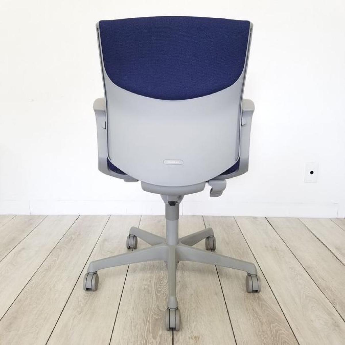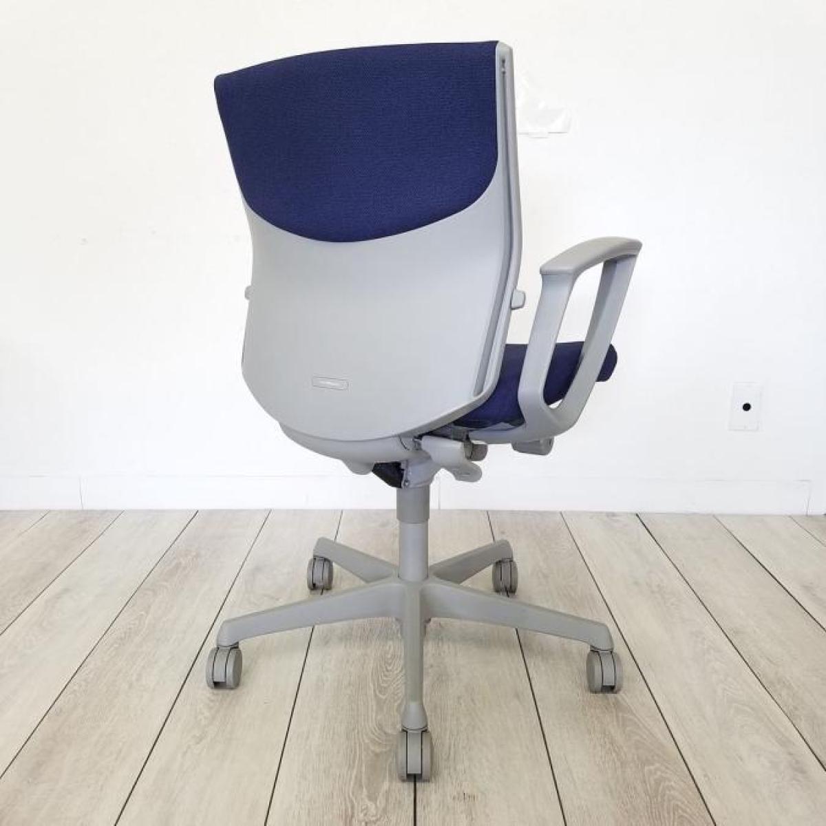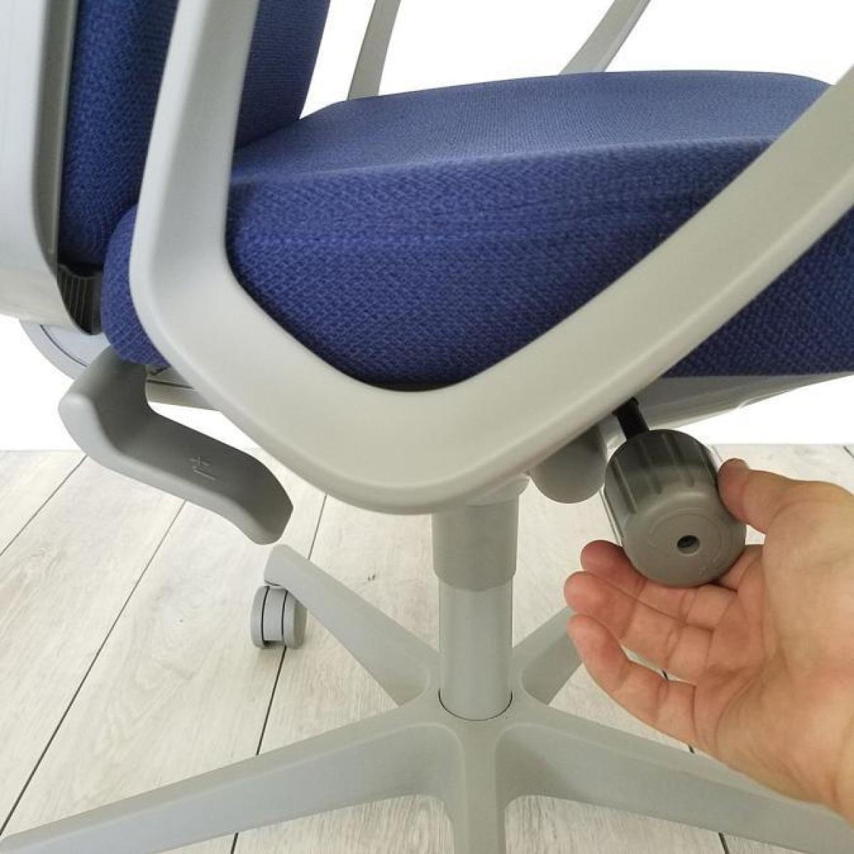 【在庫入替セール】オカムラ エスクード ローバックモデル クッションタイプ デザインアーム付き ブルー×グレーフレーム ランバーサポート搭載で安定感のある機能面と座り心地