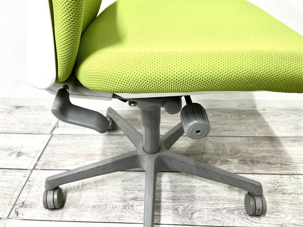 シンプルなデザインと厚みのあるクッションが大人気!機能充実のおすすめワーキングチェア ■オカムラ/スラート(sulato)/ライムグリーン×ホワイトシェル