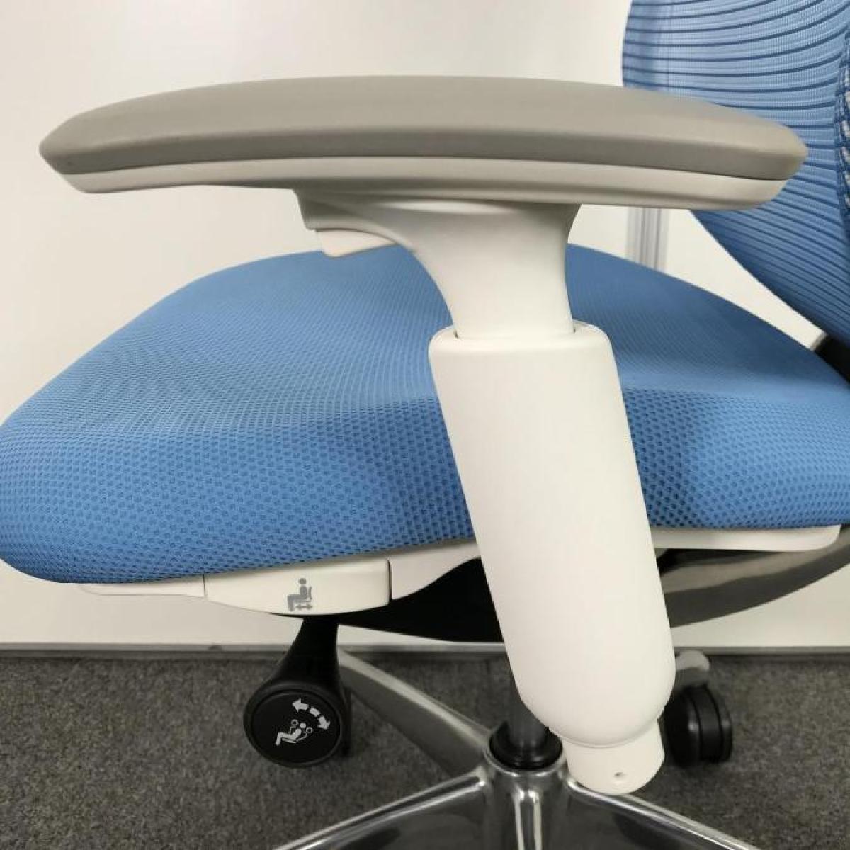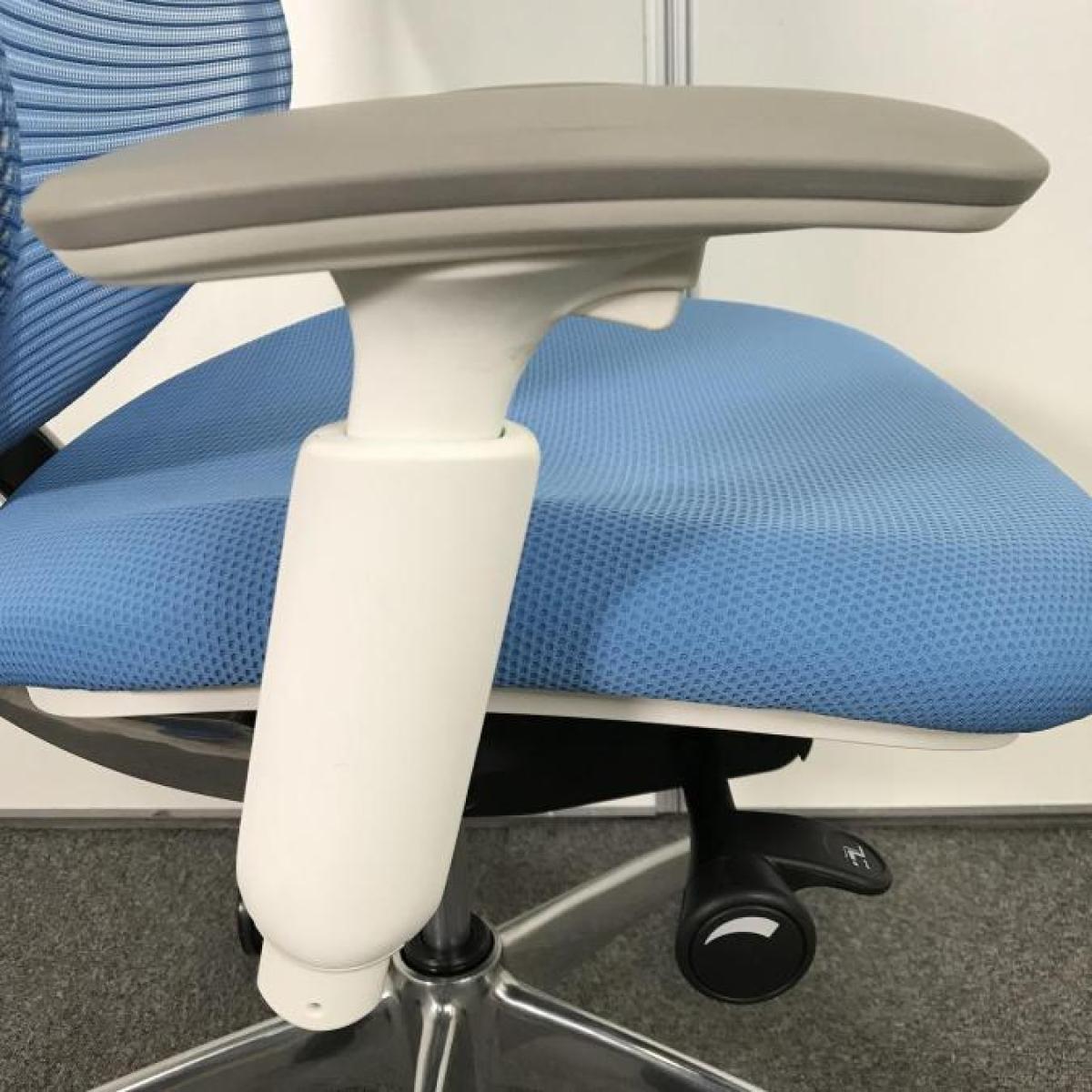 【前傾機能で作業効率アップ!安定感のある座り心地で大好評!ご自宅用にもオススメ!】■オカムラ(okamura)製 サブリナ(Sabrina)チェア ハイバック 肘付き 背面メッシュ ■可動肘 ■アクアブルー×ホワイトフレーム オフィスバスターズ神戸三宮店