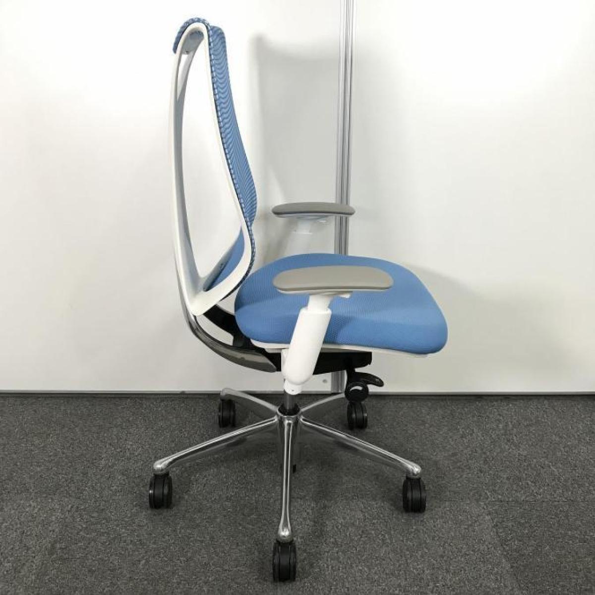 【在庫入れ替え】【訳アリ品】【前傾チルト付!流れるような美しいフォルムの最高級メッシュチェア!】■オカムラ(okamura)製 Sabrina(サブリナ) ハイバック 肘付き ■可動肘 ■背面メッシュ:アクアブルー 座面:ブルー ホワイトフレーム