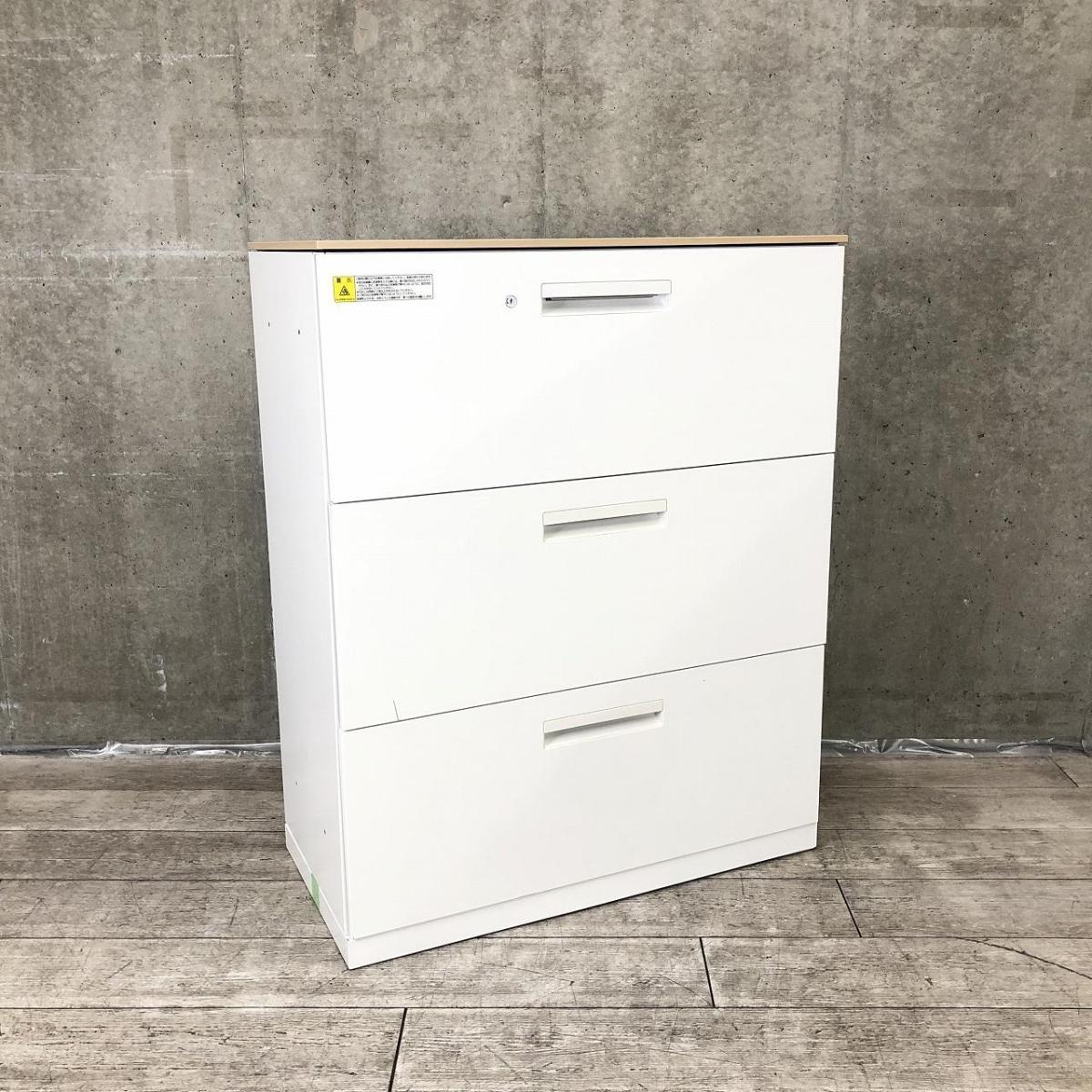 内田洋行 HSシリーズ 3段ラテラル書庫 ホワイト 鍵付き シリンダー錠 ※写真は天板付きですが、実際は天板無しとなります