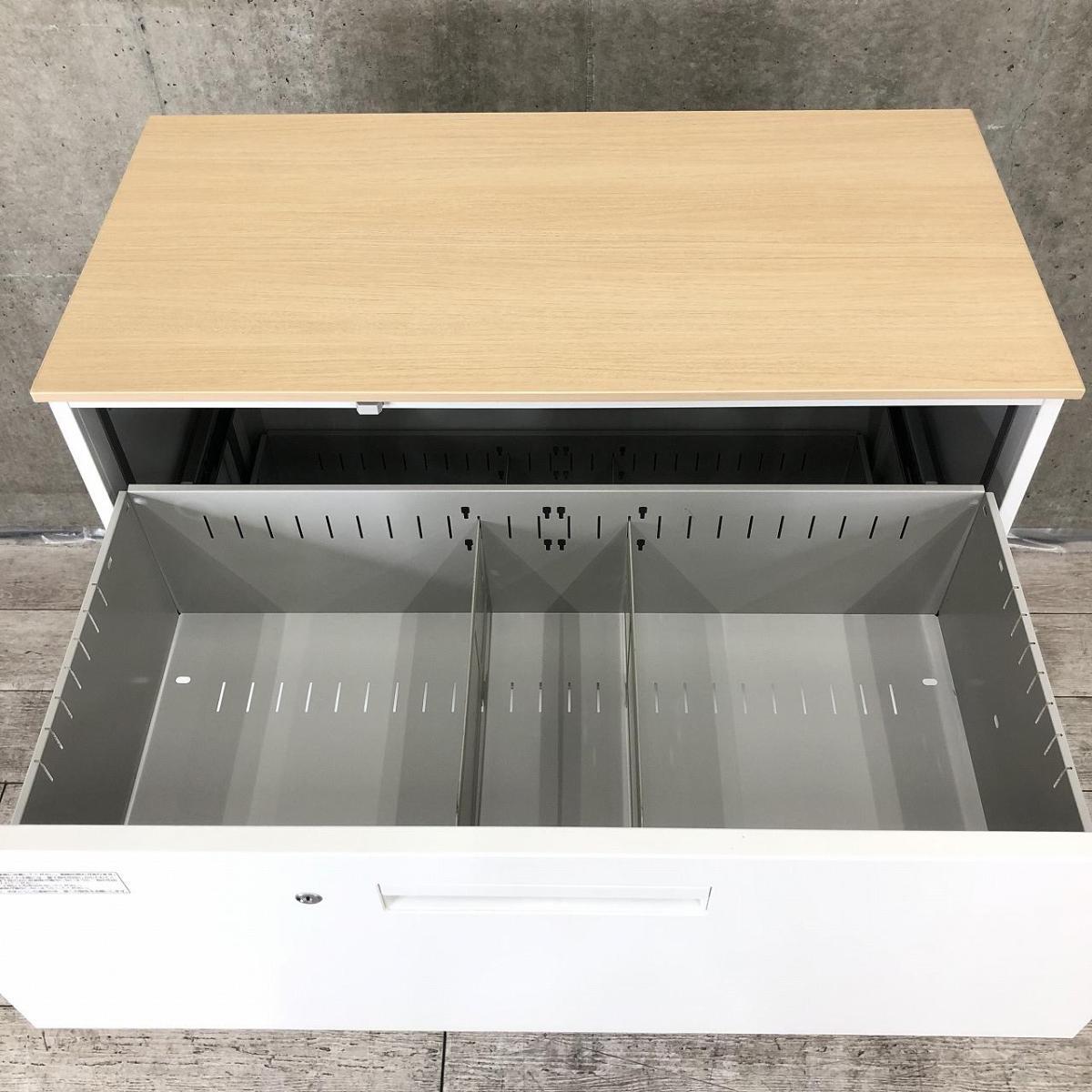 【ナチュラル天板付きでカウンターとしても使用可能!】■内田洋行 HSシリーズ(ハイパーストレージ) 3段ラテラル書庫 引き出し書庫 中古家具 九州最大級 《オフィスバスターズ福岡博多店は、福岡を拠点として、日本全国へ中古オフィス用品・オフィス家具を提供しております》サーキュラーバリューCO2削減量の算出について
