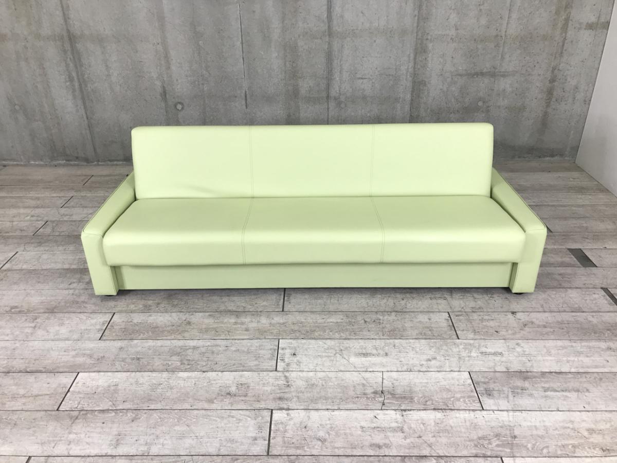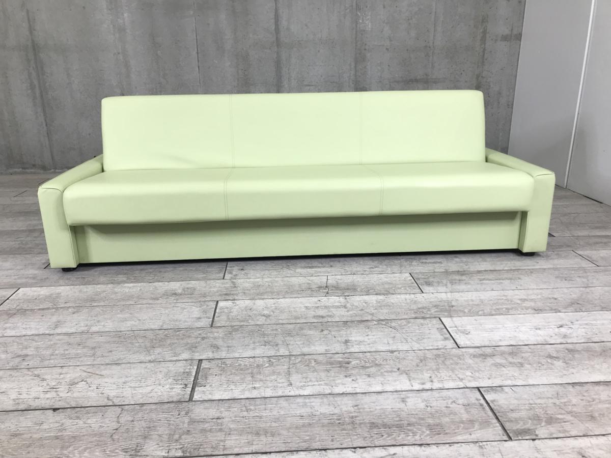 【オフィスをオシャレに!】 ■オカムラ(okamura) 3人用ソファーベッド 座面下に収納あり ■ウレタンフォーム ビニールレザー ■ミントグリーン【HU】【ABW】【関東倉庫在庫品】【弊社使用欄:A01043313】- 全店共通商品