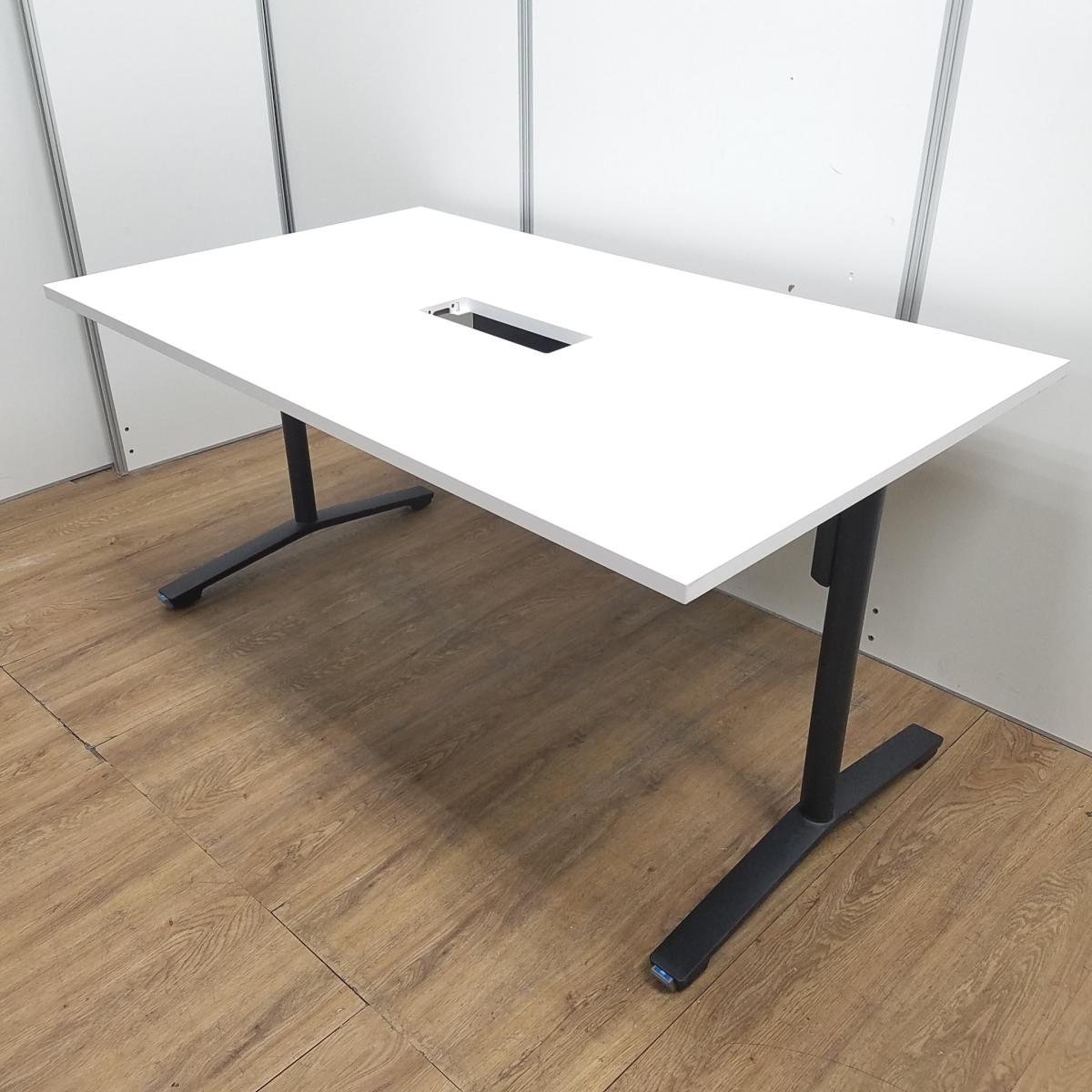 ★【T3】【商品入替のため、残り1台限り】【訳あり品:配線カバー不足】コクヨ製 ビエナ ホワイト W1500サイズ W1500xD900xH720 配線口付(配線カバー不足) T字キャスター・シルバー脚 休憩室や工場などのリニューアルなどにもおすすめです! 人気のホワイト天板! 使い勝手の良い横幅1500タイプ! 2~4人での会議におすすめ! ミーティングテーブル!!在庫がある店舗一覧