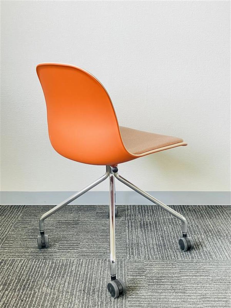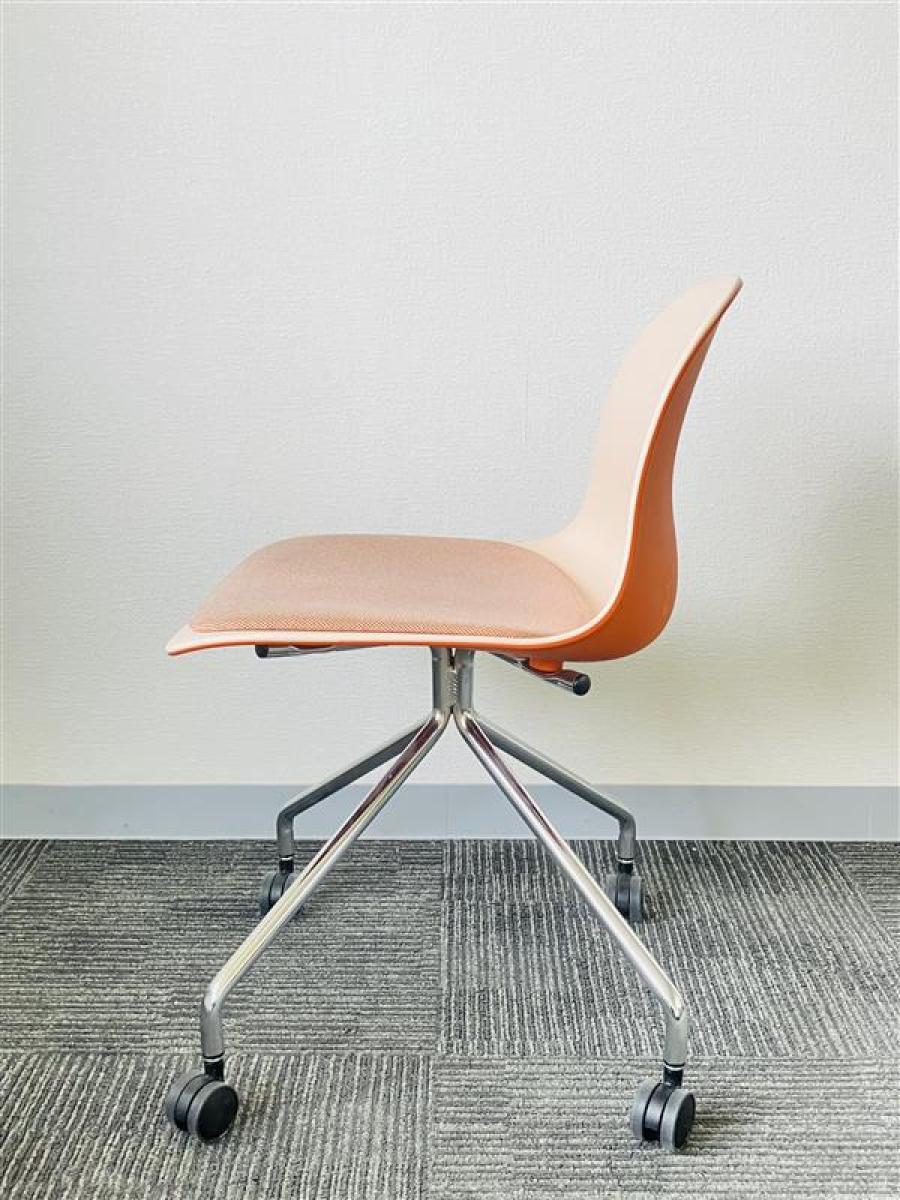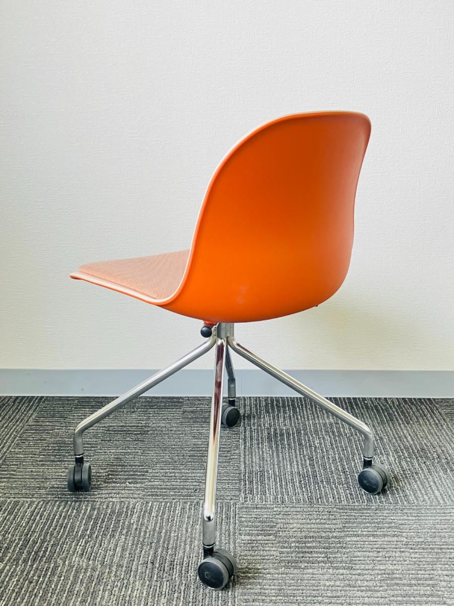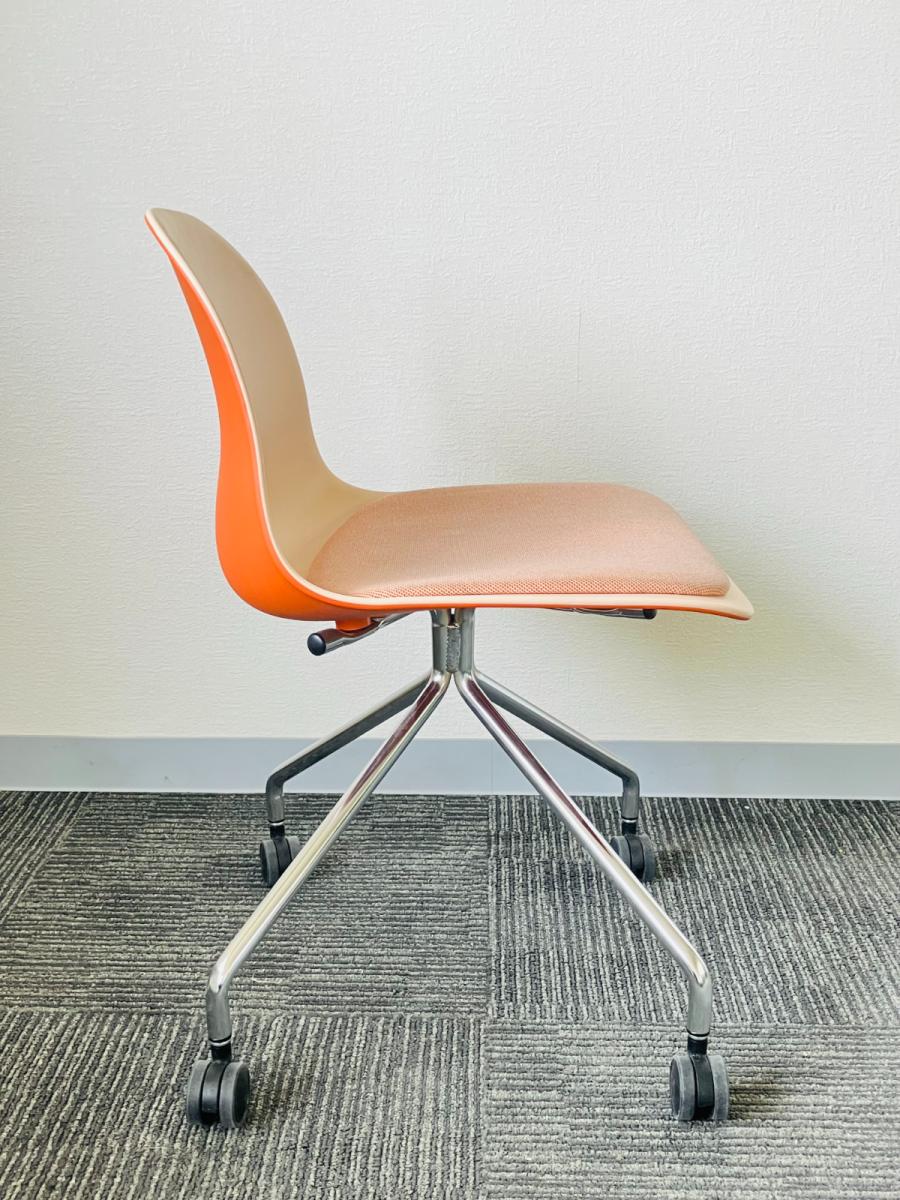 【トレンドをおさえたカラーリングが空間に馴染む!重ねて収納可能なコンパクトな樹脂シェルチェア入荷!】■イトーキ(ITOKI)製 ニーノチェア(Nino) ミーティングチェア 座面パッド付 オレンジ- 茨城南店