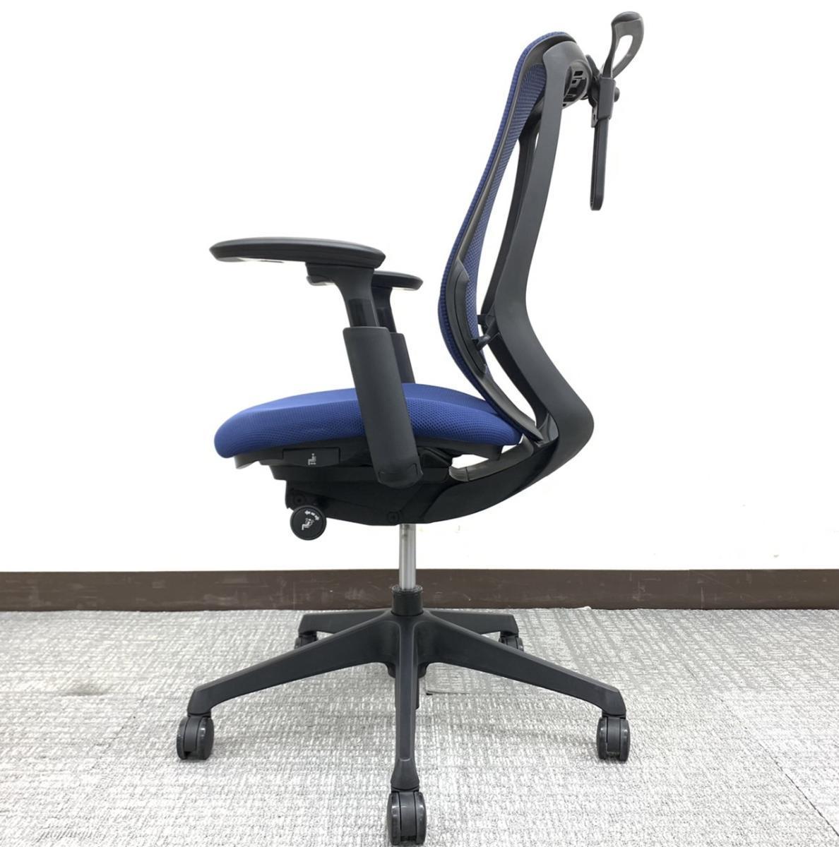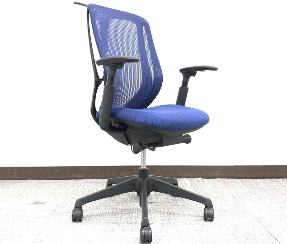 【前傾チルト機能付き!オカムラ製品で最も人気を集める高機能メッシュチェア!】■オカムラ(okamura)製 シルフィ(Sylphy)チェア 肘付ハイバック 背面メッシュ ■ブルー×ブラックフレーム
